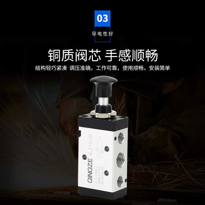 气动元件4R210-08手拉阀 二位五通手动控制开关气动阀门直通式