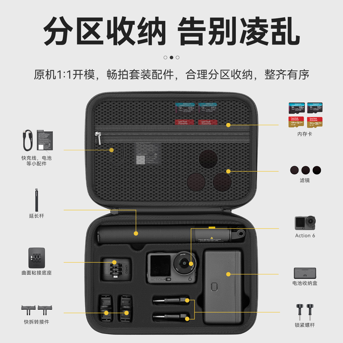 XFJI适用DJI大疆action6全能套装收纳包便携osmo灵眸Action6运动相机背包全能畅拍标准套装保护配件盒防摔箱