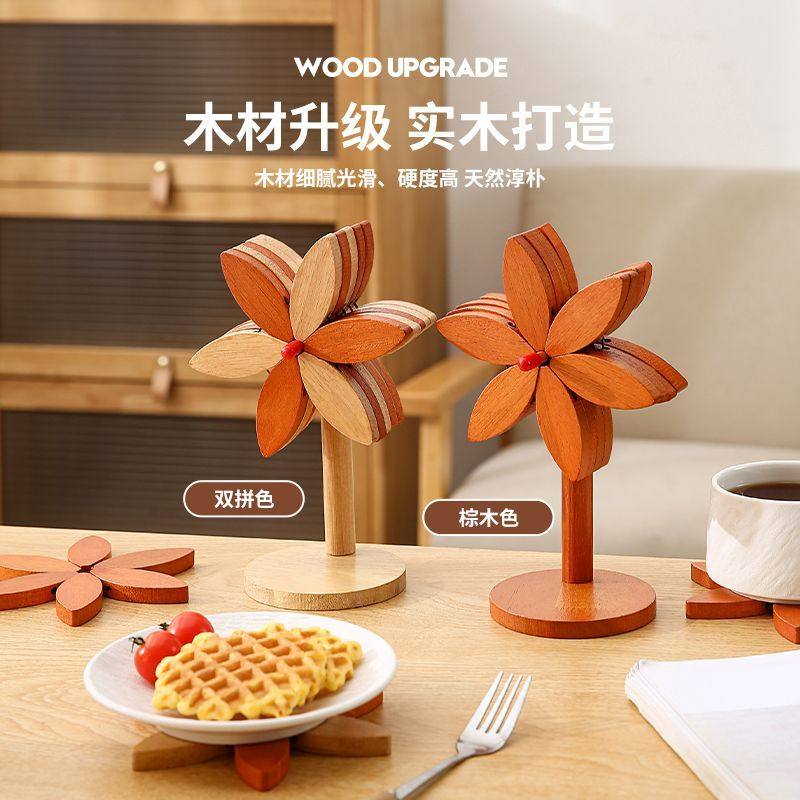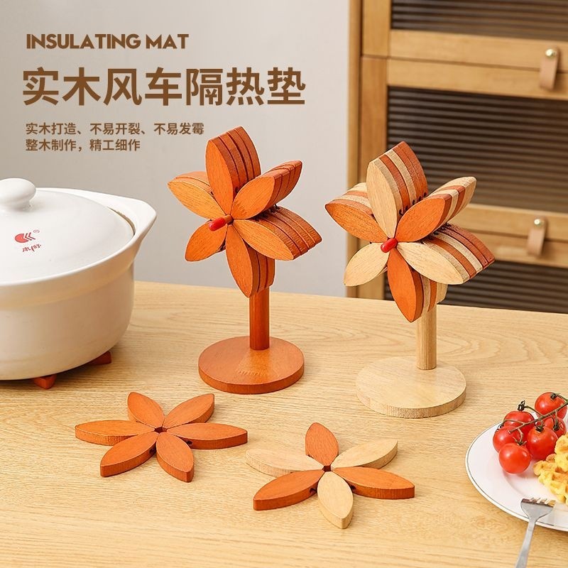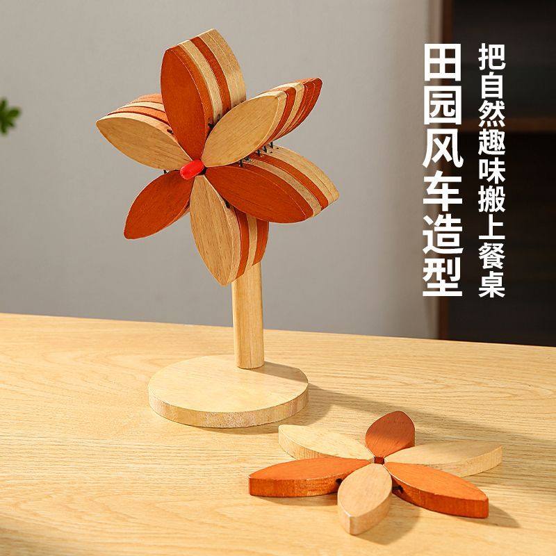 高级感风车隔热垫餐桌摆件创意好物实木防烫锅垫杯垫碗垫厨房桌面