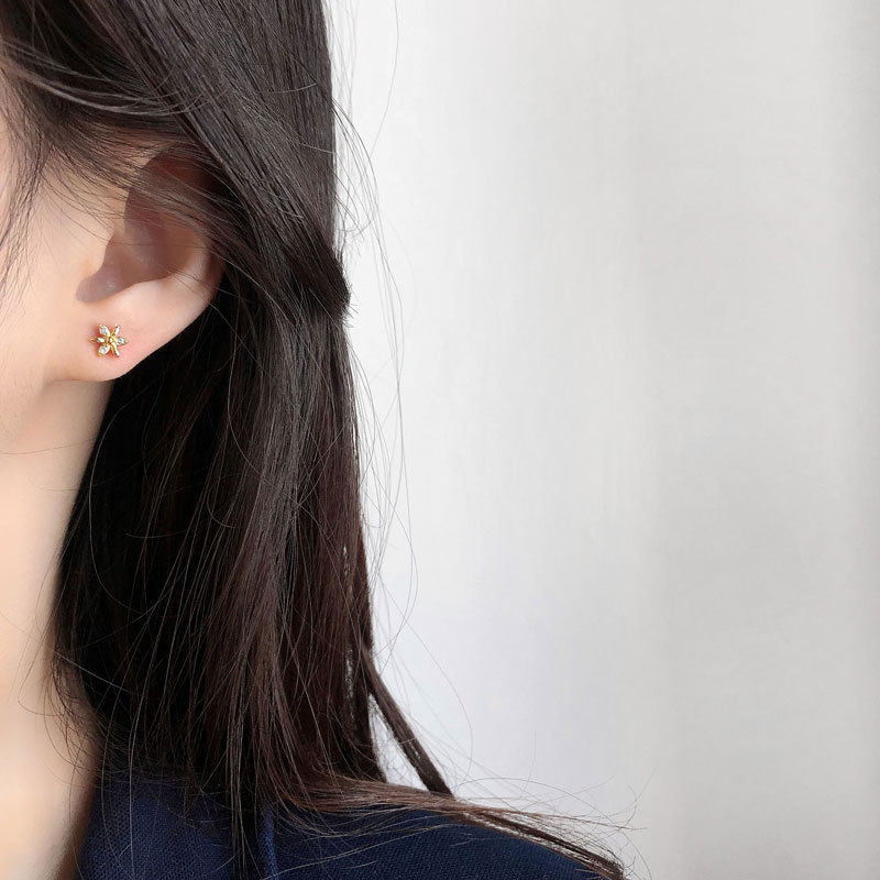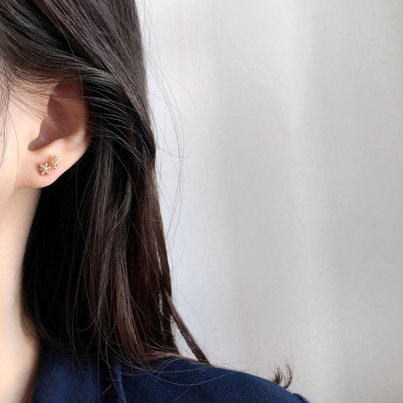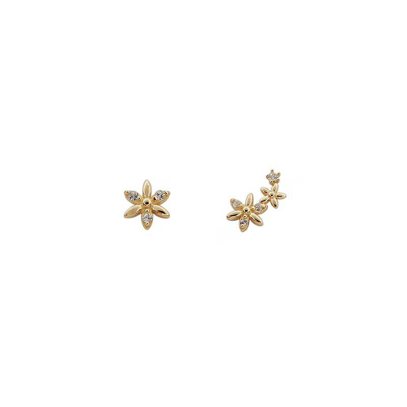 乾佳S925纯银首饰耳饰女款气质日系不对称唯美花朵耳钉 百搭温柔
