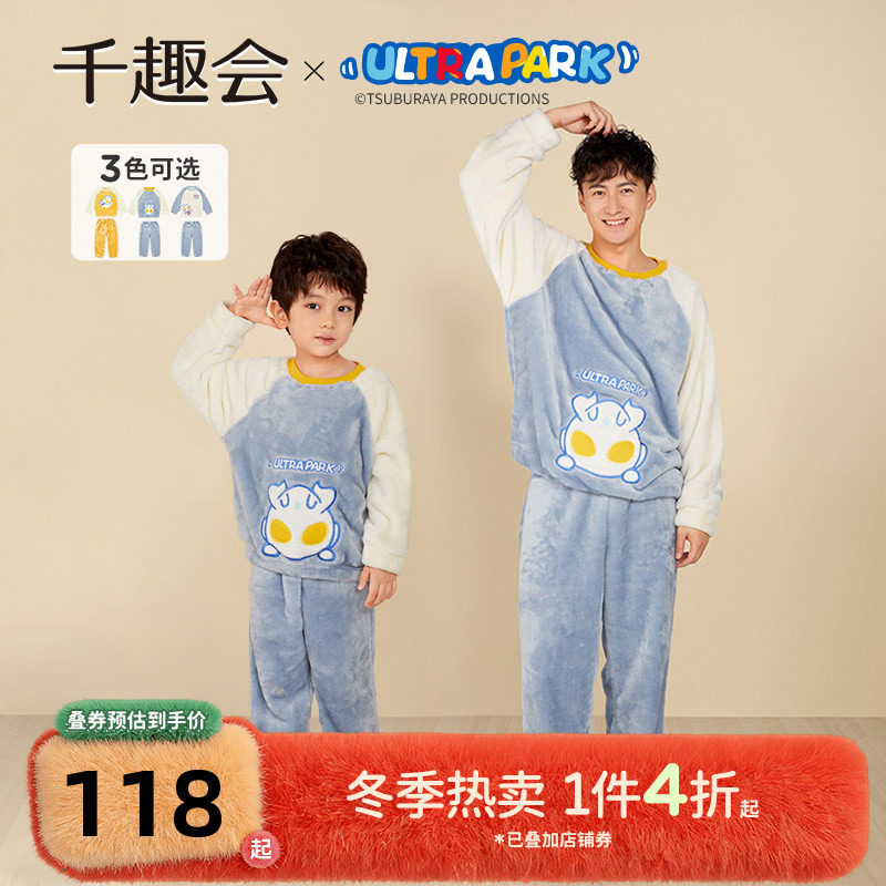 千趣会童装奥特曼联名冬季家居服亲子装男女童保暖睡衣套装