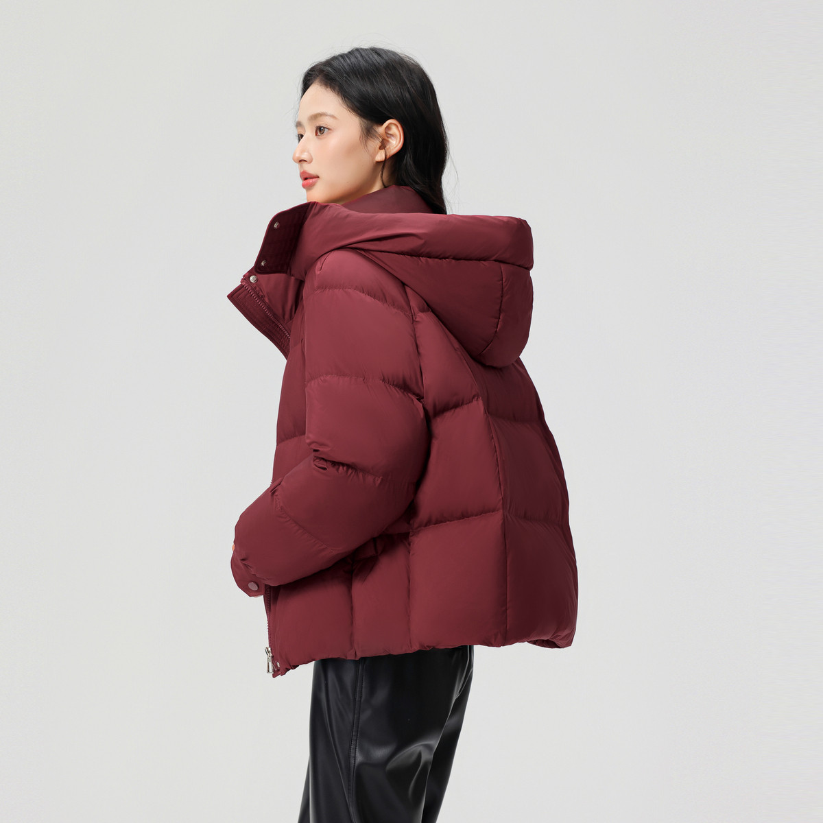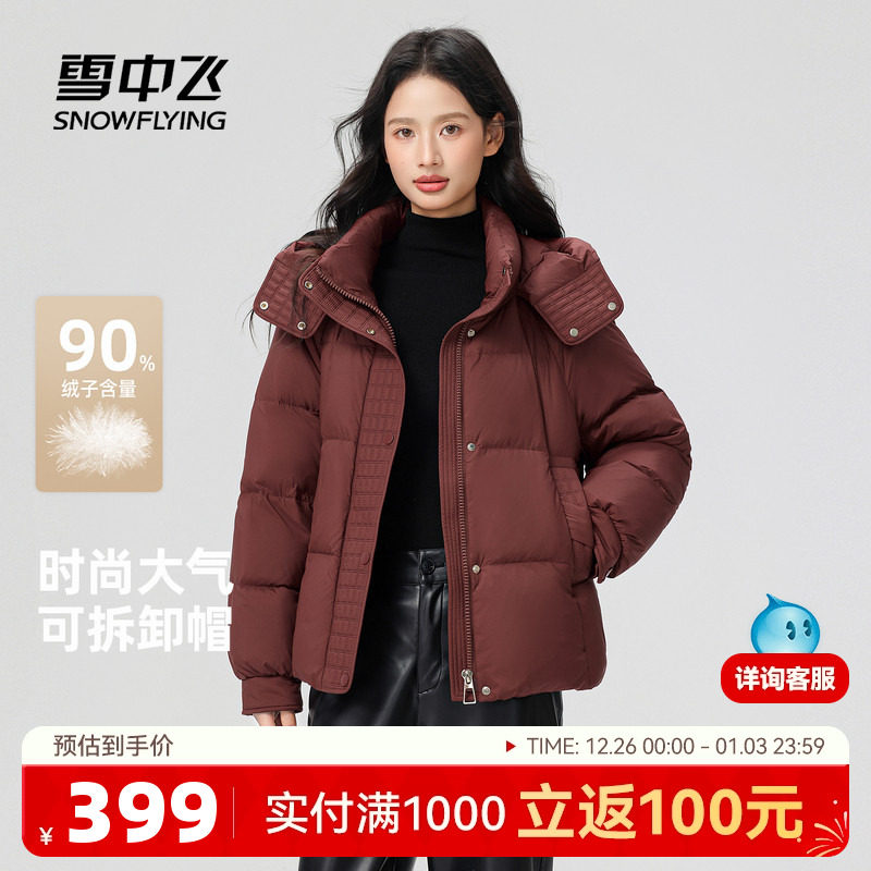 雪中飞2025冬新款女士羽绒服短款时尚暗花保暖韩版连帽气质保暖
