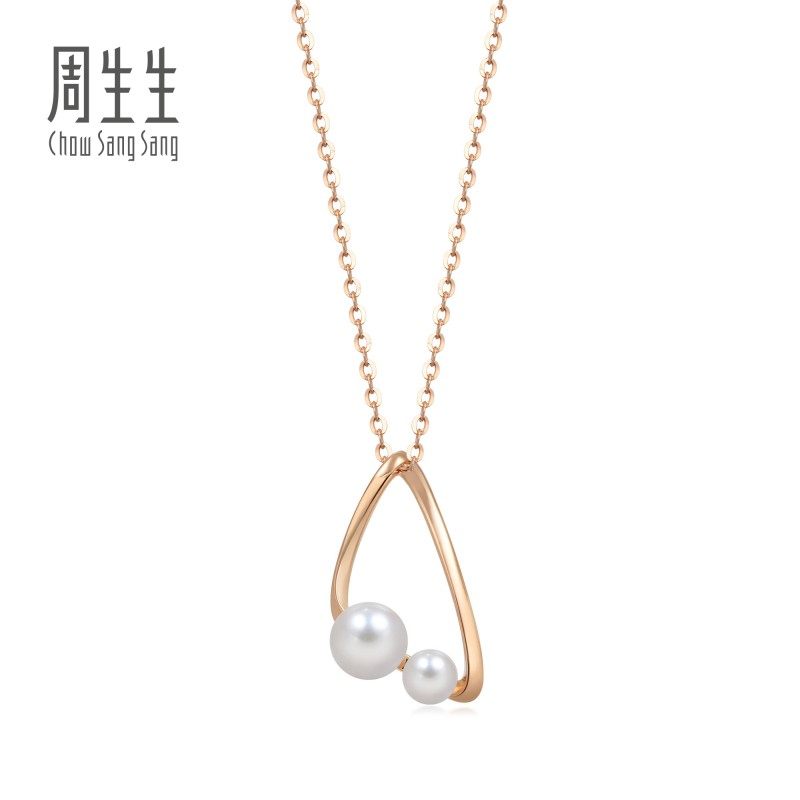 周生生Daily Luxe 18K玫瑰金Akoya珍珠吊坠彩金89872P