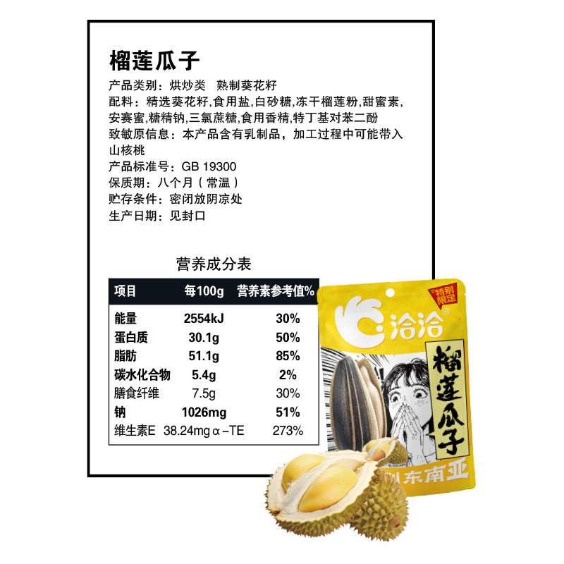 洽洽榴莲味88g瓜子风味葵花籽恰恰炒货休闲办公室零食葵花子袋装