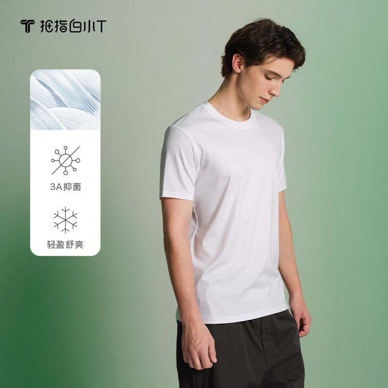 白小T冰柔棉休闲圆领短袖T恤男女夏季新款凉感抑菌上衣防晒体恤衫