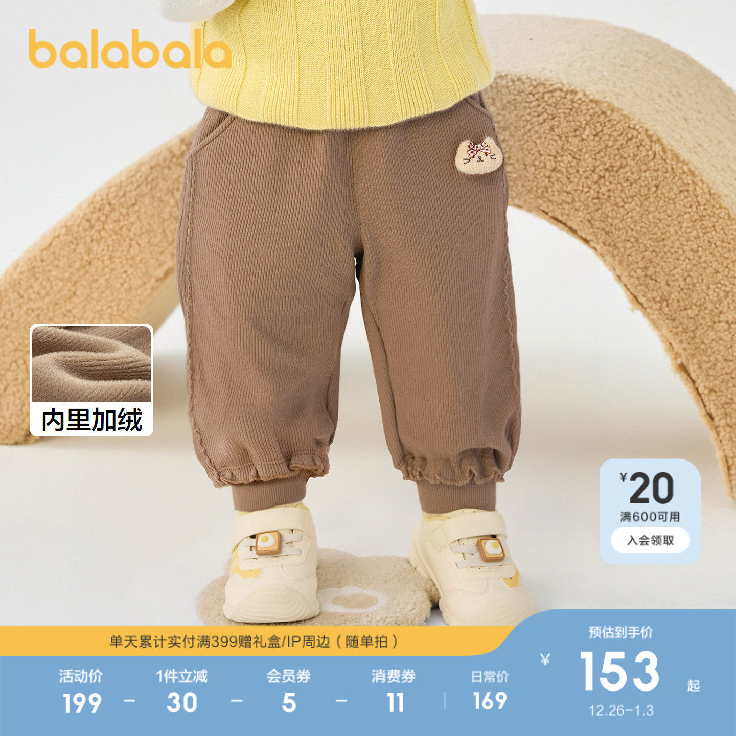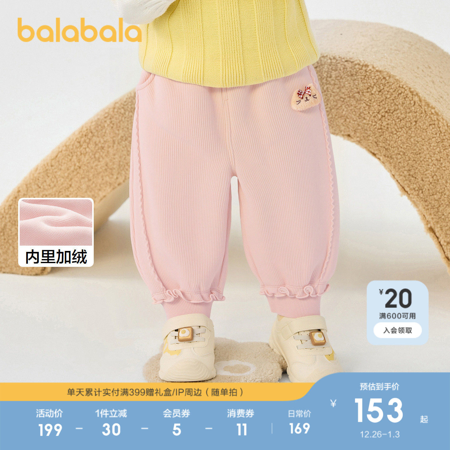 【商场同款】巴拉巴拉宝宝长裤加绒女童裤子冬2025新款休闲裤甜美