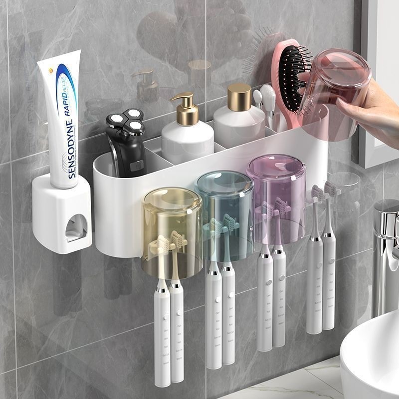 牙刷置物架免打孔卫生间壁挂式牙杯漱口杯收纳放电动牙刷架子倒挂
