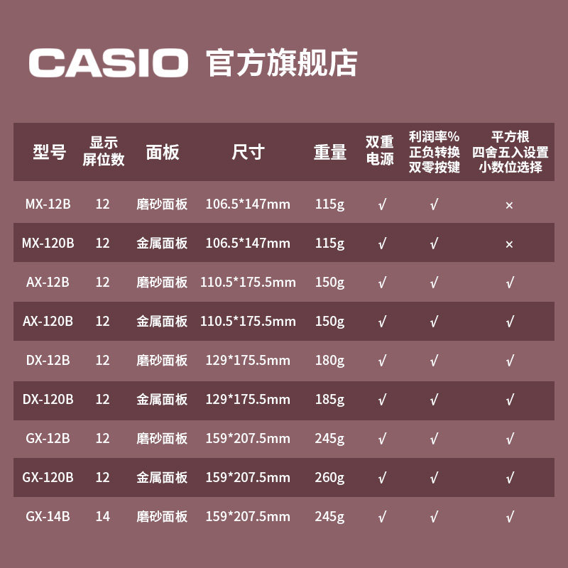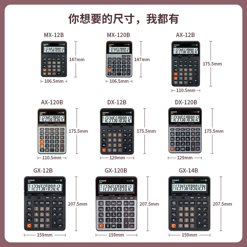 Casio/卡西欧财务会计商务办公用品文具计算器MX/AX/DX/GX-12/120B磨砂/金属收银大屏防震电子学生计算机