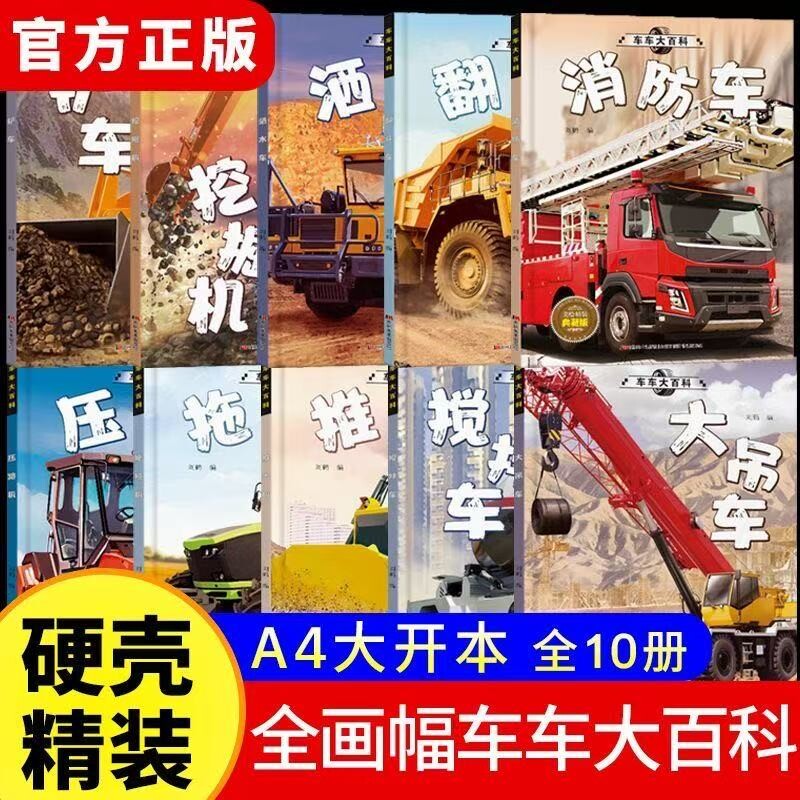 精装硬壳车车大百科工程车绘本3到6岁汽车书籍认知图画书儿童车车认知4-5岁幼儿园宝宝铲车挖掘机消防车交通工具故事书