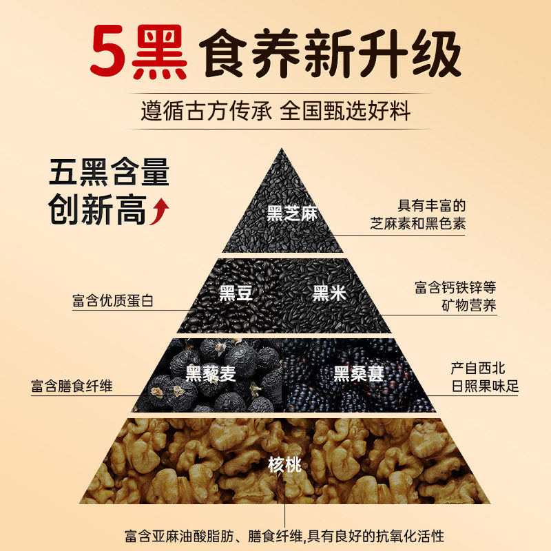 北京同仁堂五黑粉黑芝麻黑桑葚黑豆核桃粉养发营养早餐代餐粉黑米