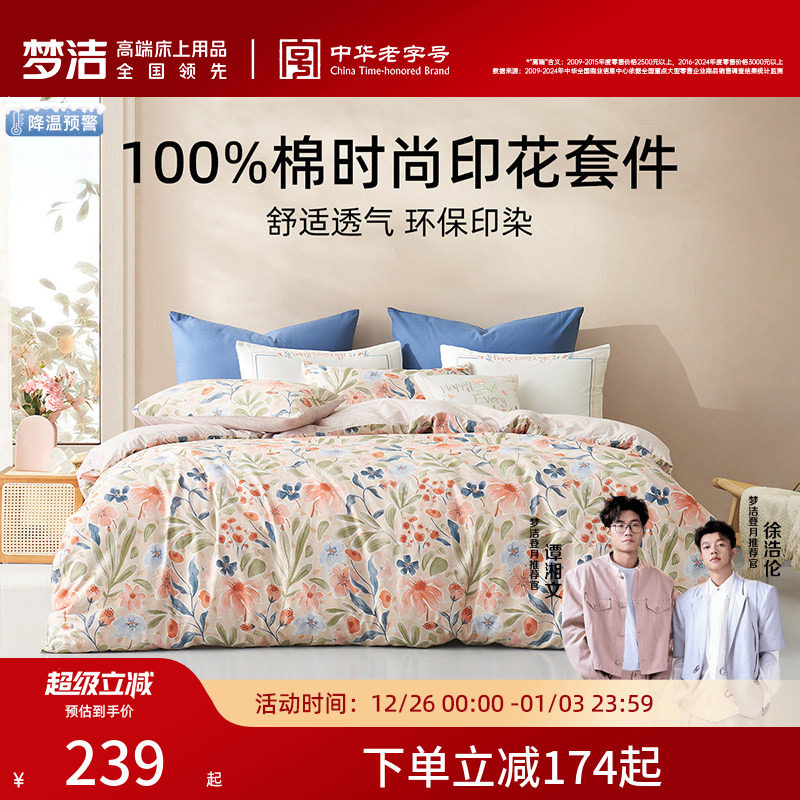 梦洁家纺三四件套全棉纯棉2025新款床品春秋床单被套床上用品套件