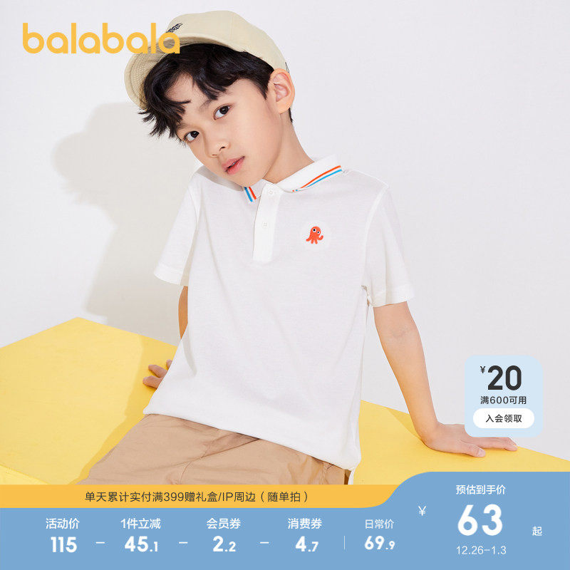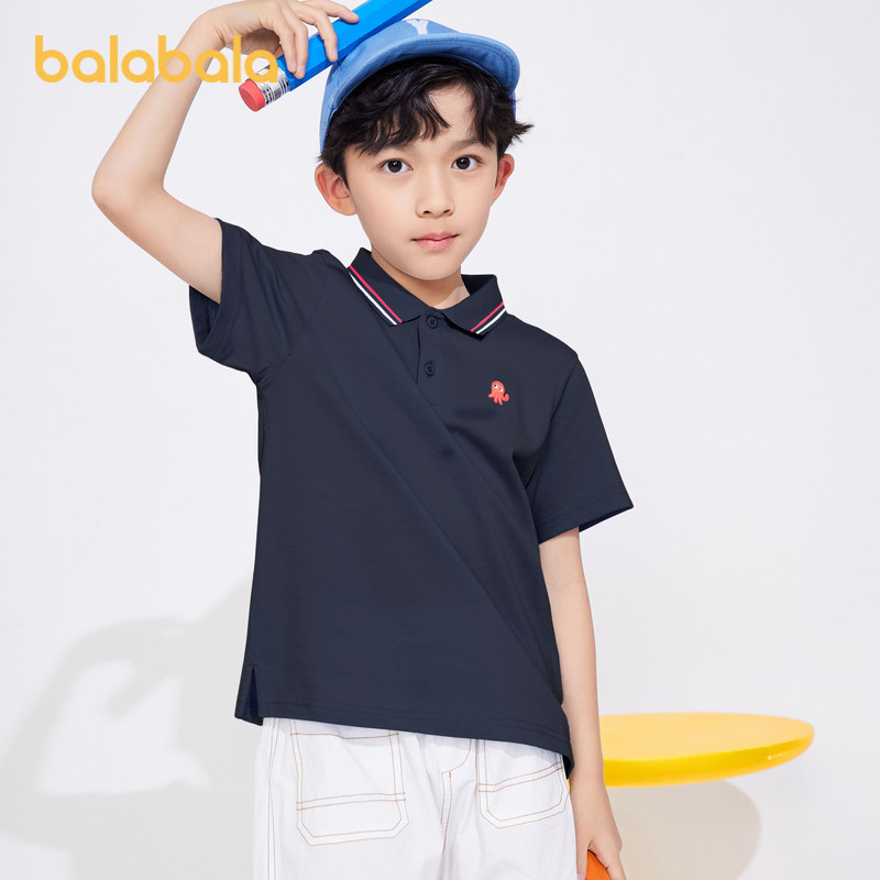 巴拉巴拉童装男童短袖t恤儿童polo衫2025夏装中大童凉感条纹上衣