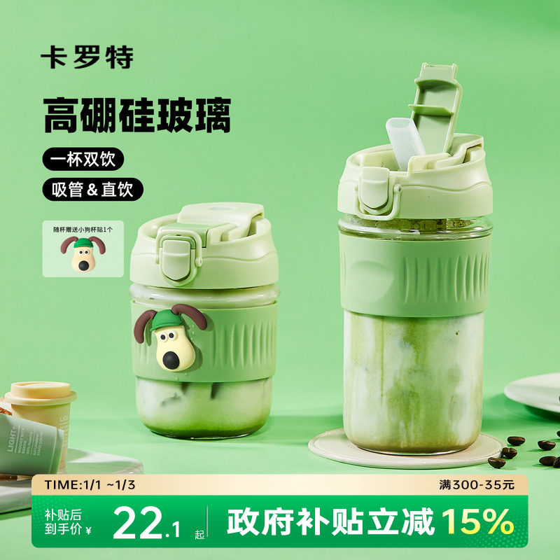卡罗特玻璃杯吸管水杯2025新款女高颜值大容量泡茶便携随行咖啡杯