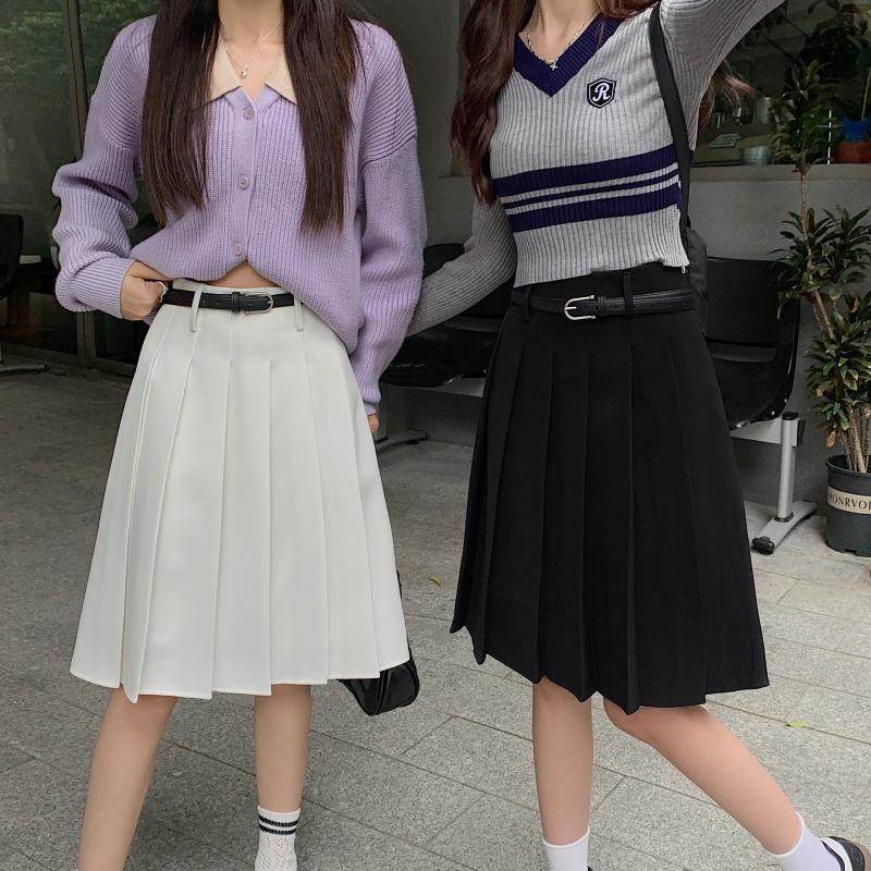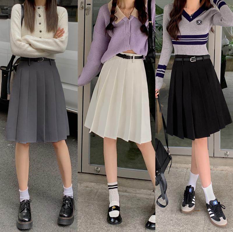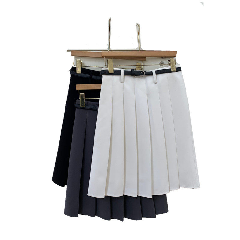 灰色百褶裙女春夏中长款大码高腰显瘦蓬蓬a字裙学院风西装半身裙