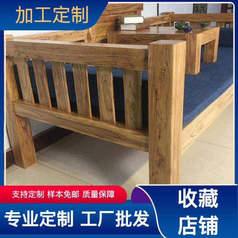 直销榆木罗汉床中式原木色客厅沙发床榻大料方子榫卯结构实木