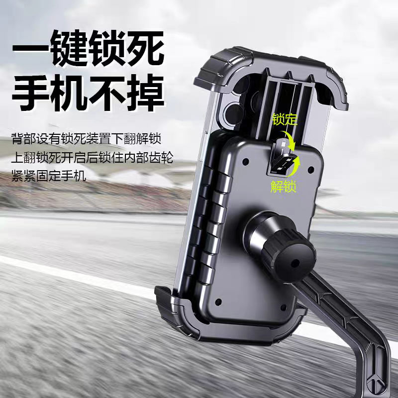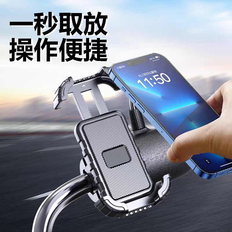 电动车手机支架电单车 外卖外送支架导航 四角包围一键锁紧摩托车金属手机支架 自行车手机支架