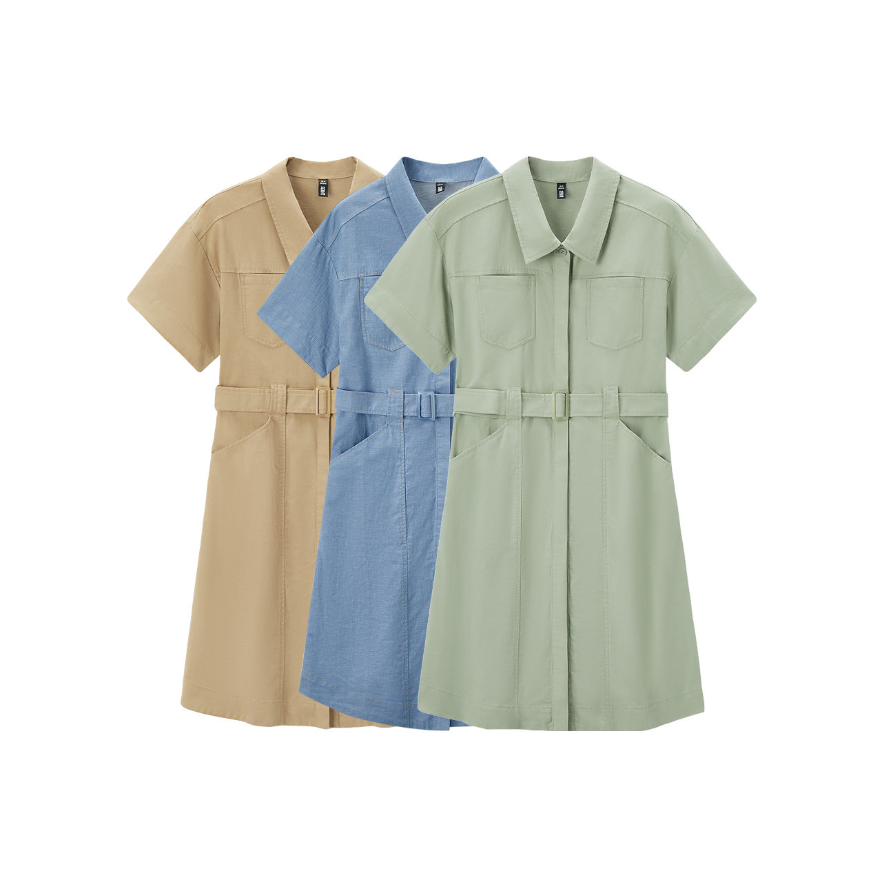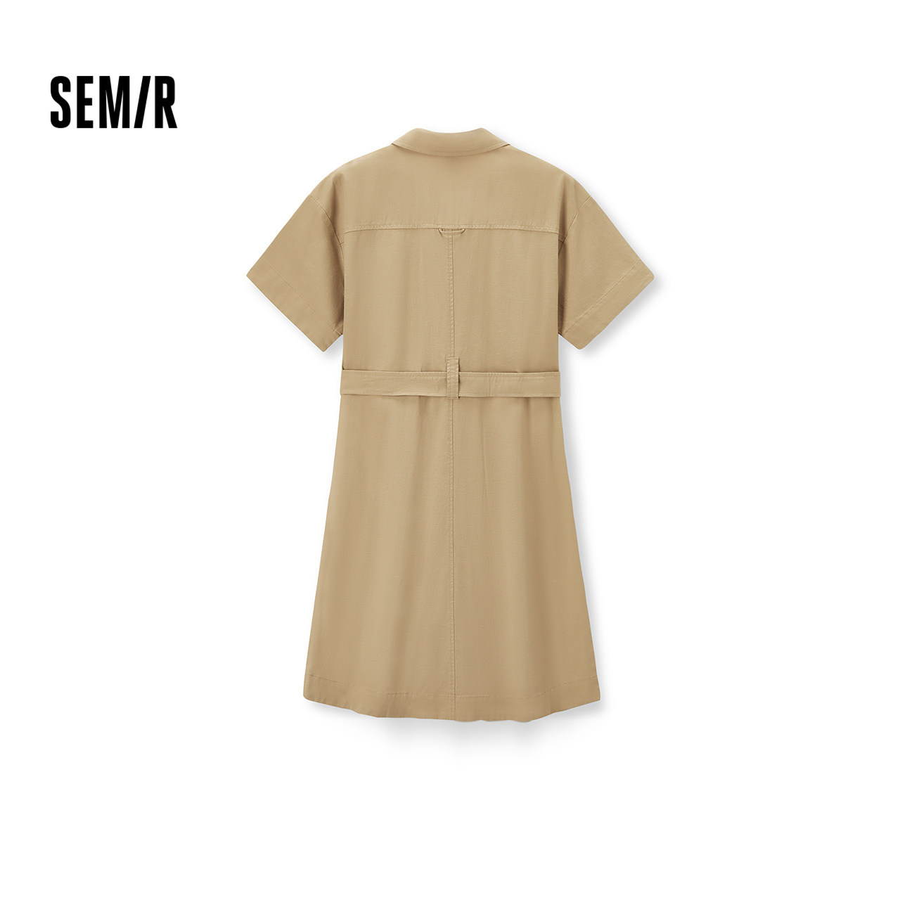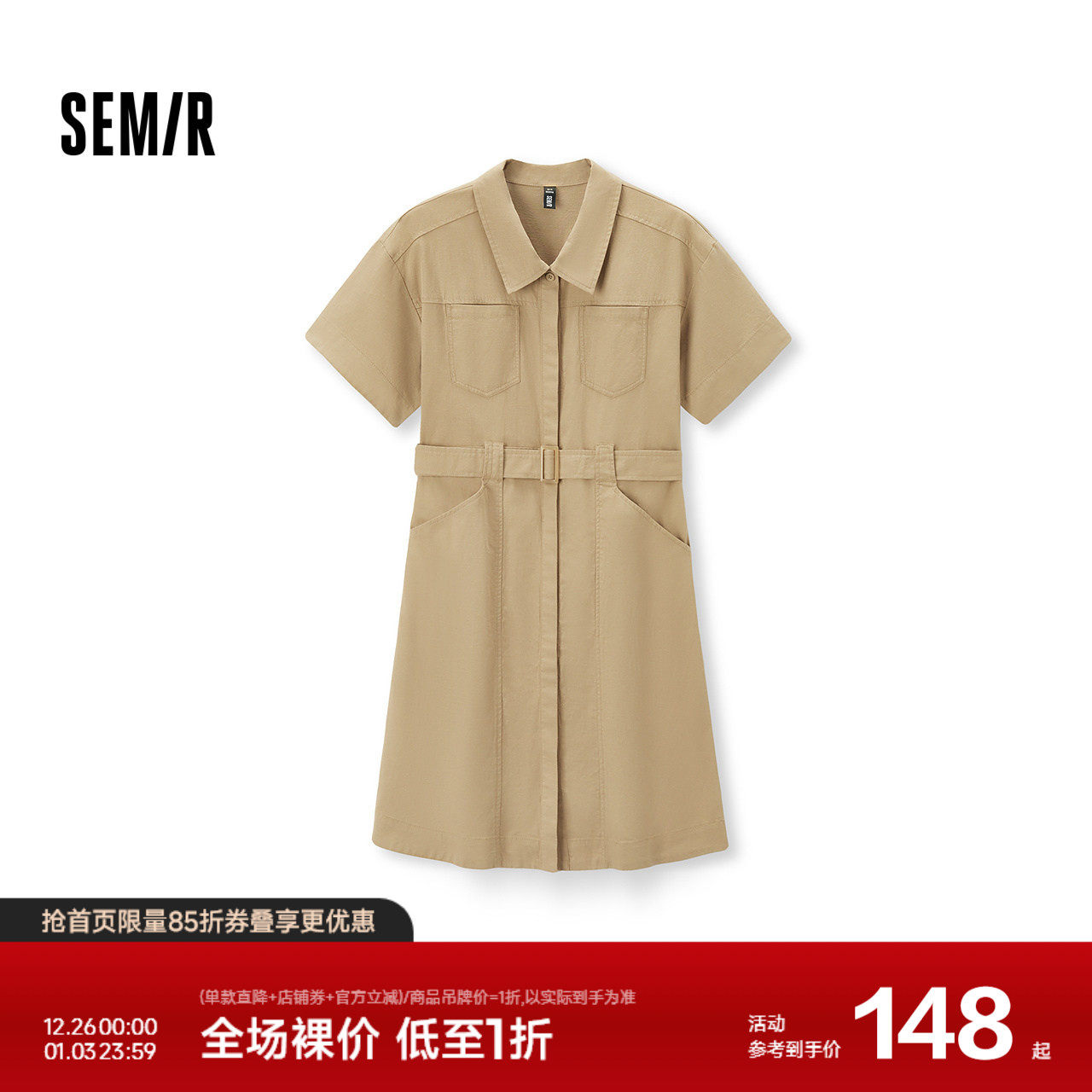 森马连衣裙女纯色宽松衬衫裙潮流百搭夏季盐系腰带短裙复古风时尚