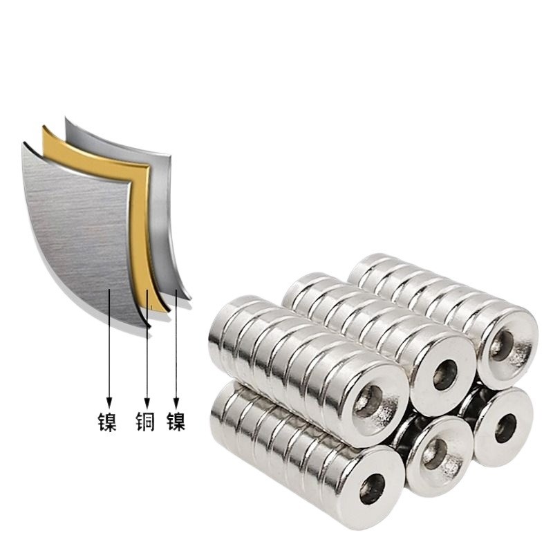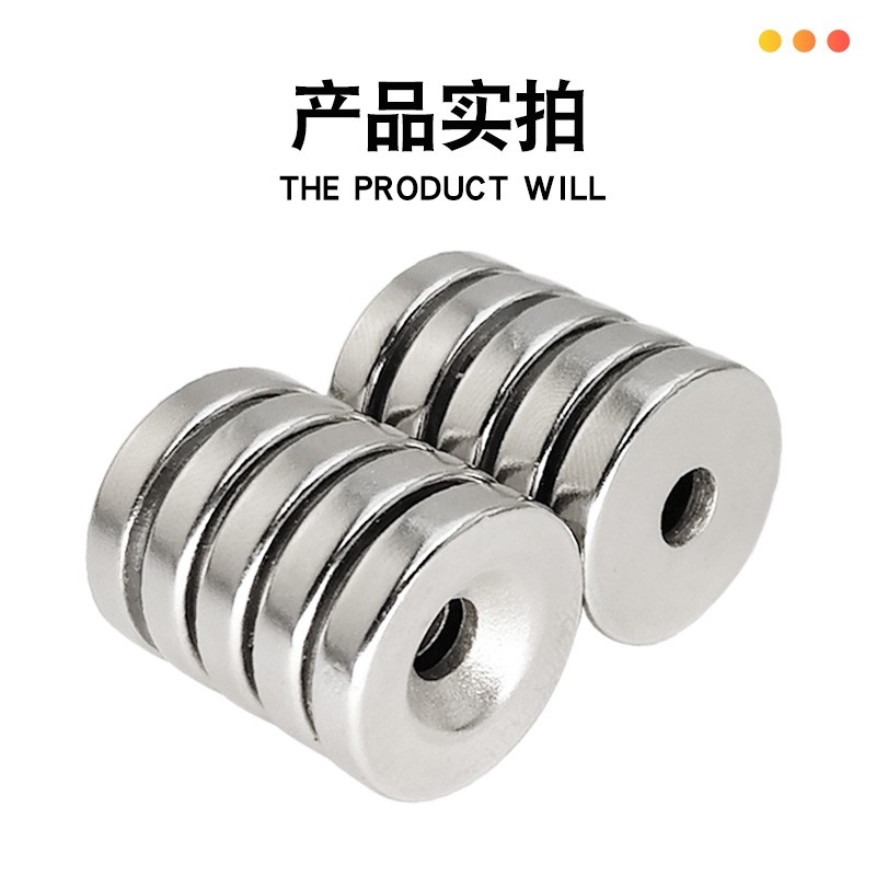 圆形强力磁铁带孔吸铁石钕汝强磁高强磁铁贴片石块磁力沉孔吸力