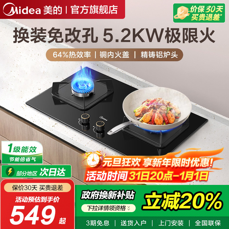 美的燃气灶煤气灶家用双灶天然气液化气猛火灶台嵌入台式灶具Q310