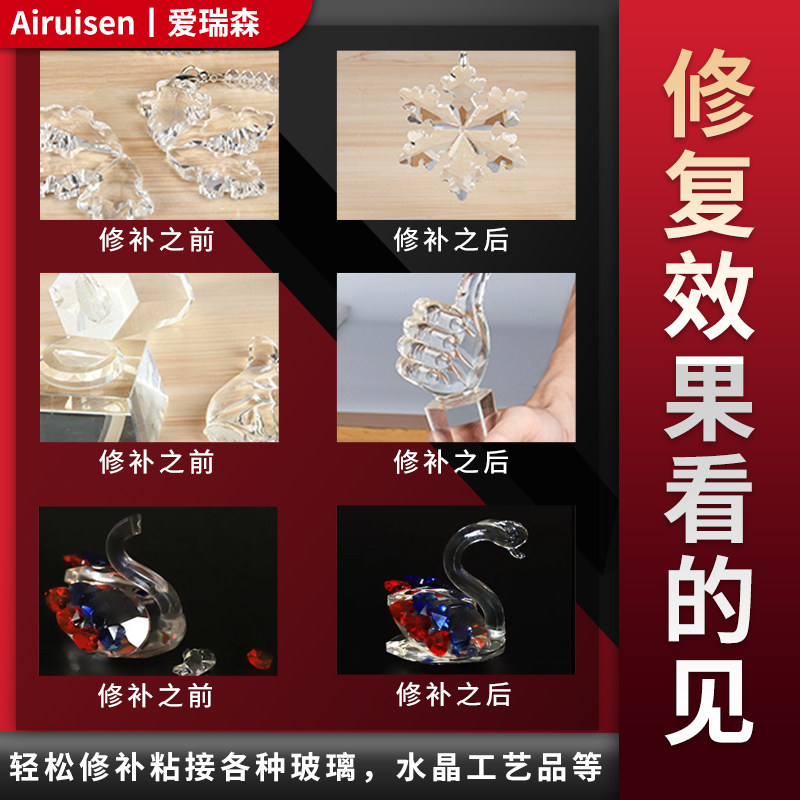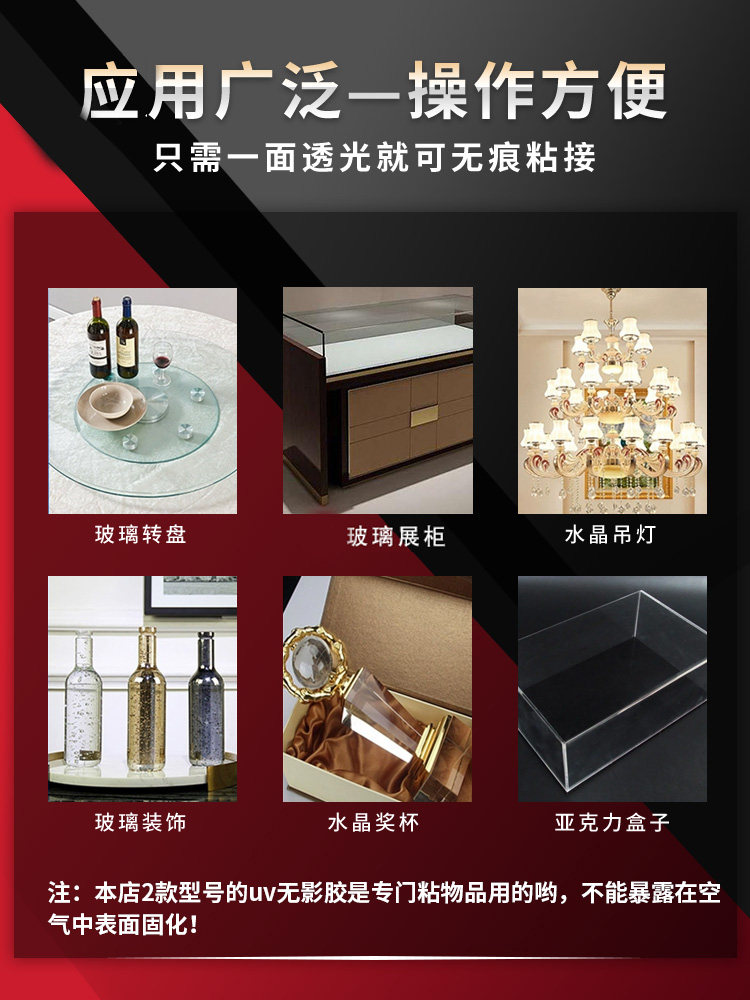 UV无影胶高透明玻璃亚克力专用透明无痕胶水粘金属钢化玻璃茶几水晶奖杯装饰吊灯紫外线固化粘合剂强力快干