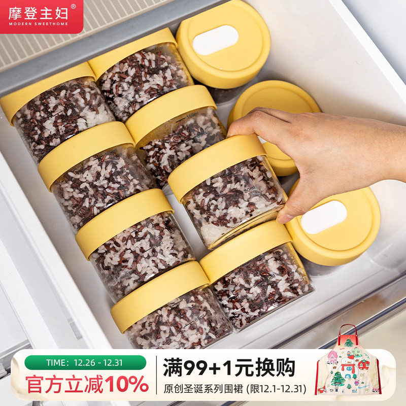 摩登主妇糙米饭分装盒冷冻可微波保鲜盒杂粮饭高汤储存玻璃密封盒