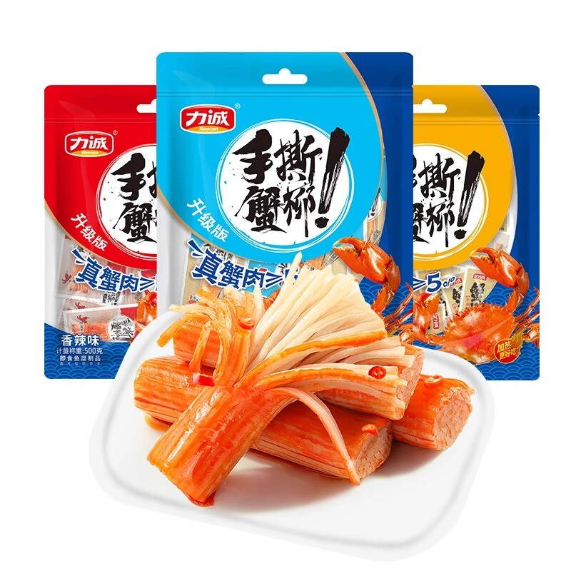 力诚手撕蟹柳棒即食真空独立原味香辣味儿童休闲零食品蟹肉寿司
