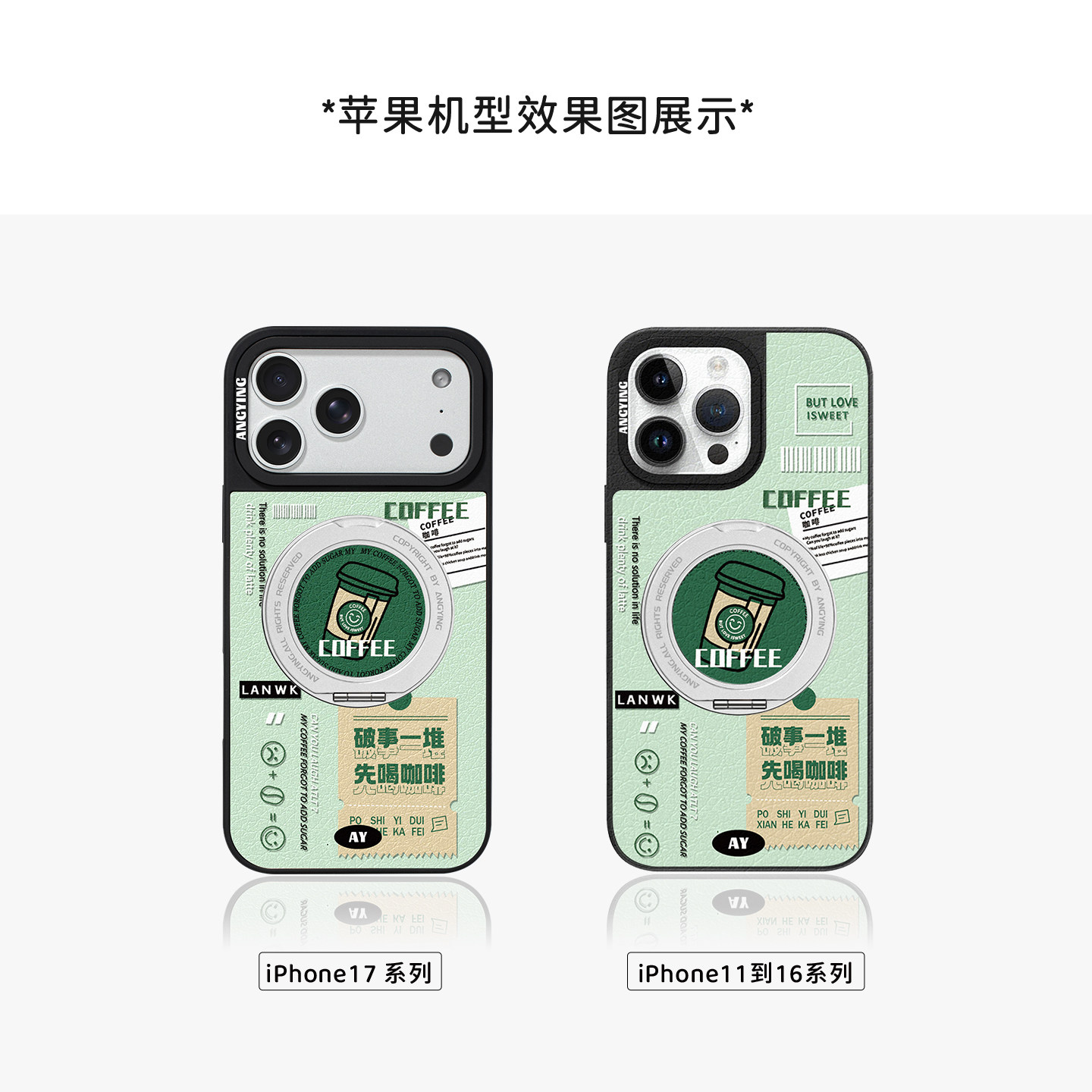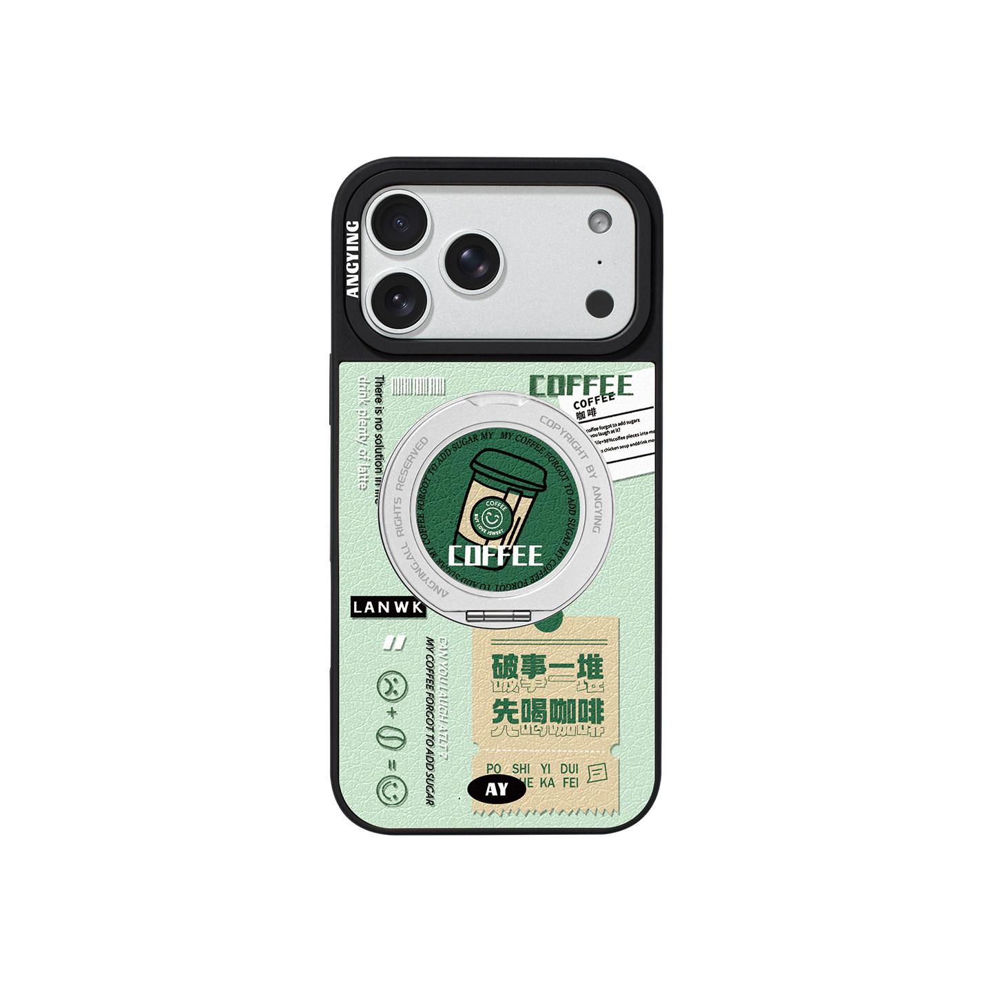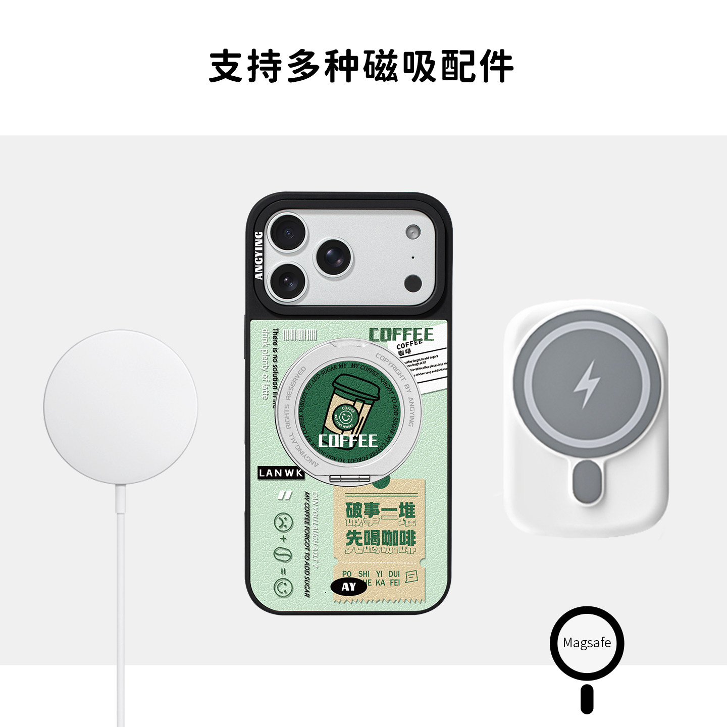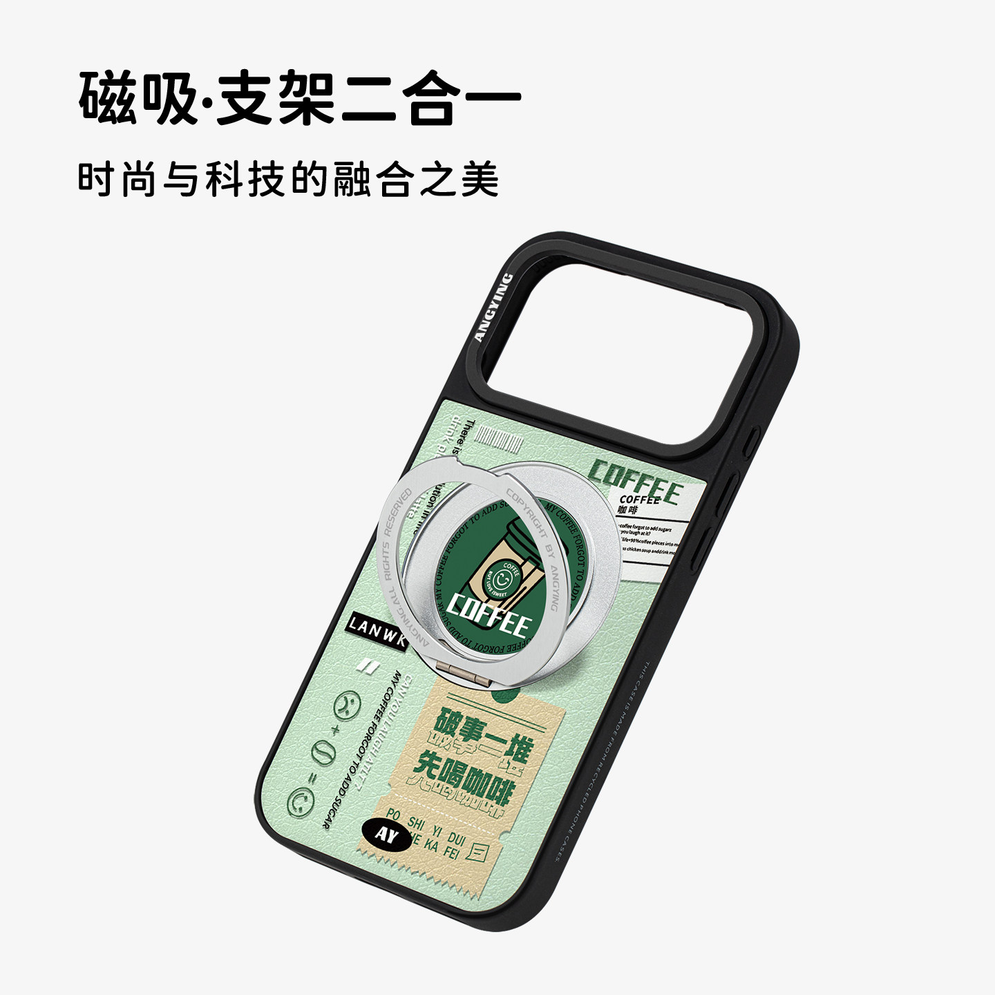 ANGYING × 来杯咖啡适用苹果17promax手机壳新款iphone16pro磁吸带支架ip15支点Yo6潮牌网红创意套高级感