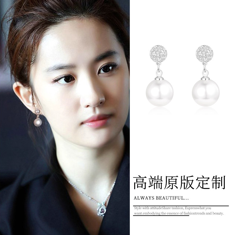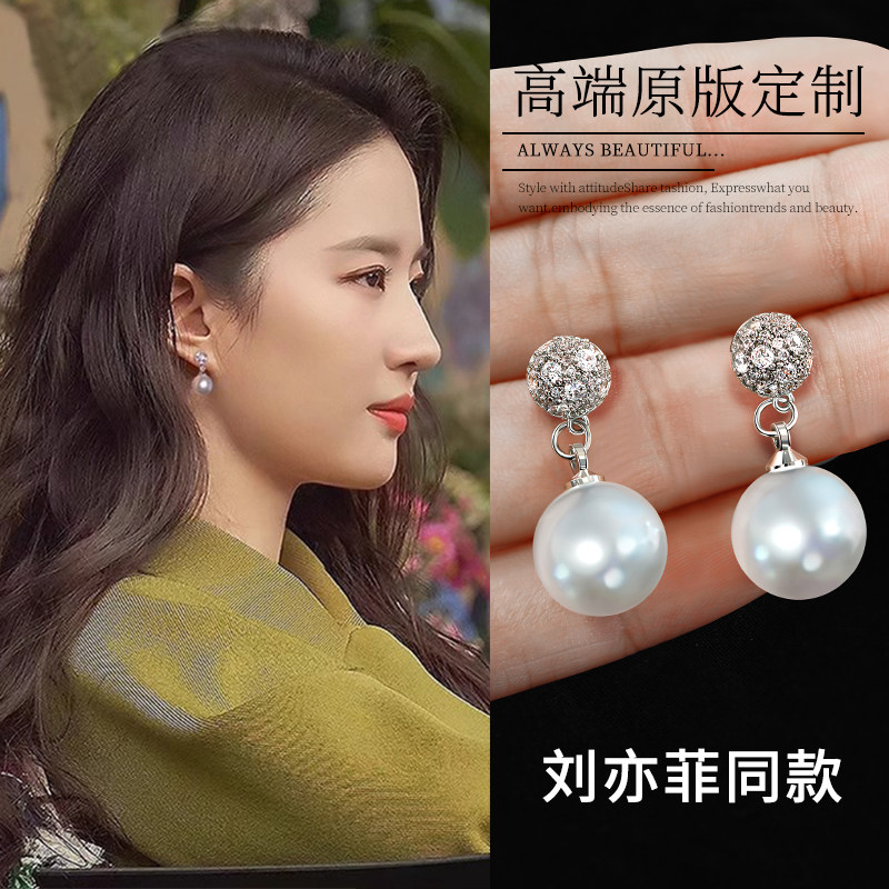 刘亦菲同款S925银针仿珍珠耳钉女耳环无耳洞耳夹2025新款爆款耳饰