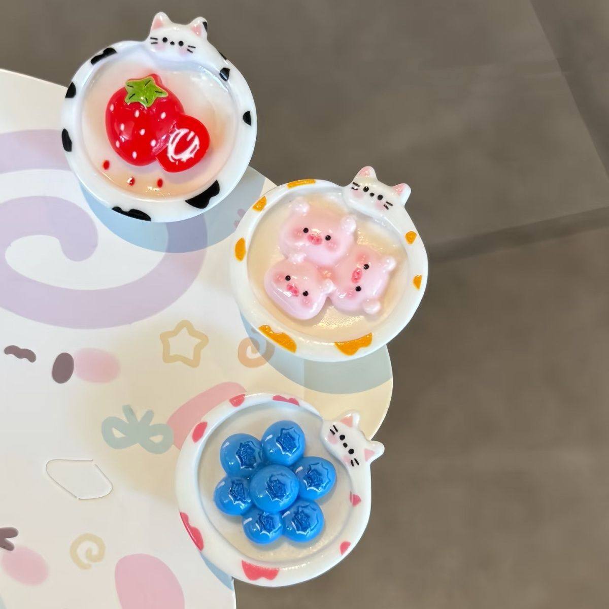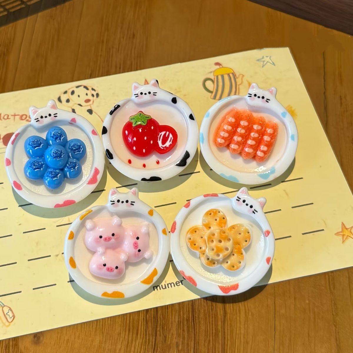 水果草莓猪猪盘甜美学生ins卡通猫咪可爱女孩树脂发卡通发饰品