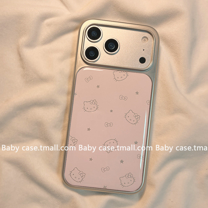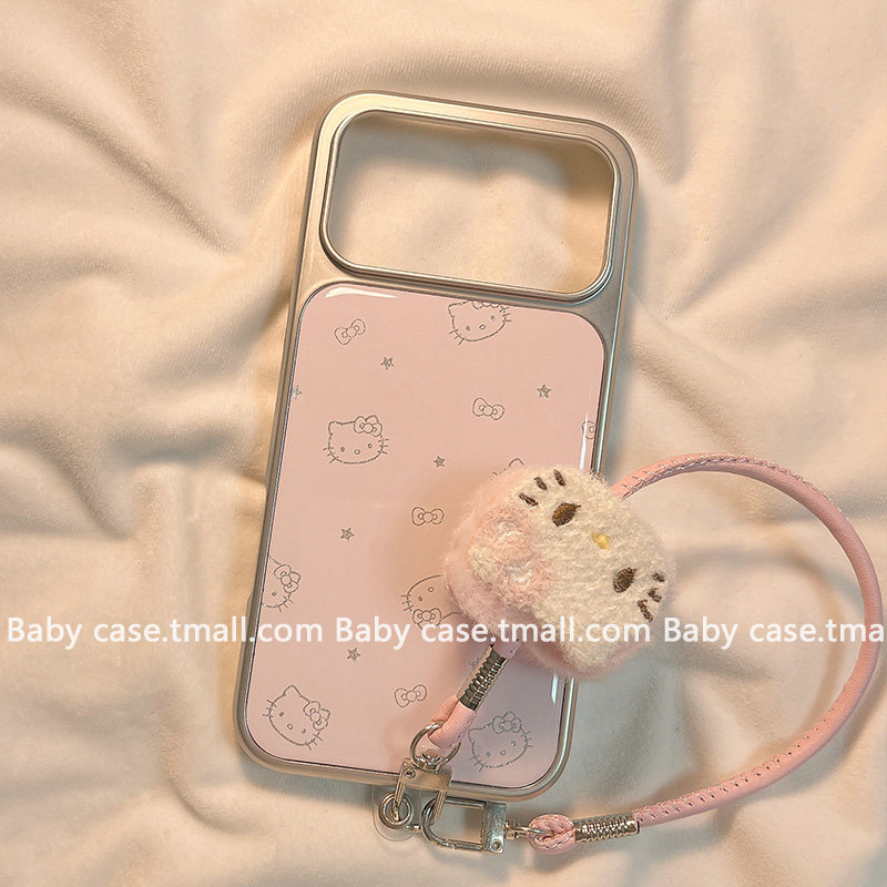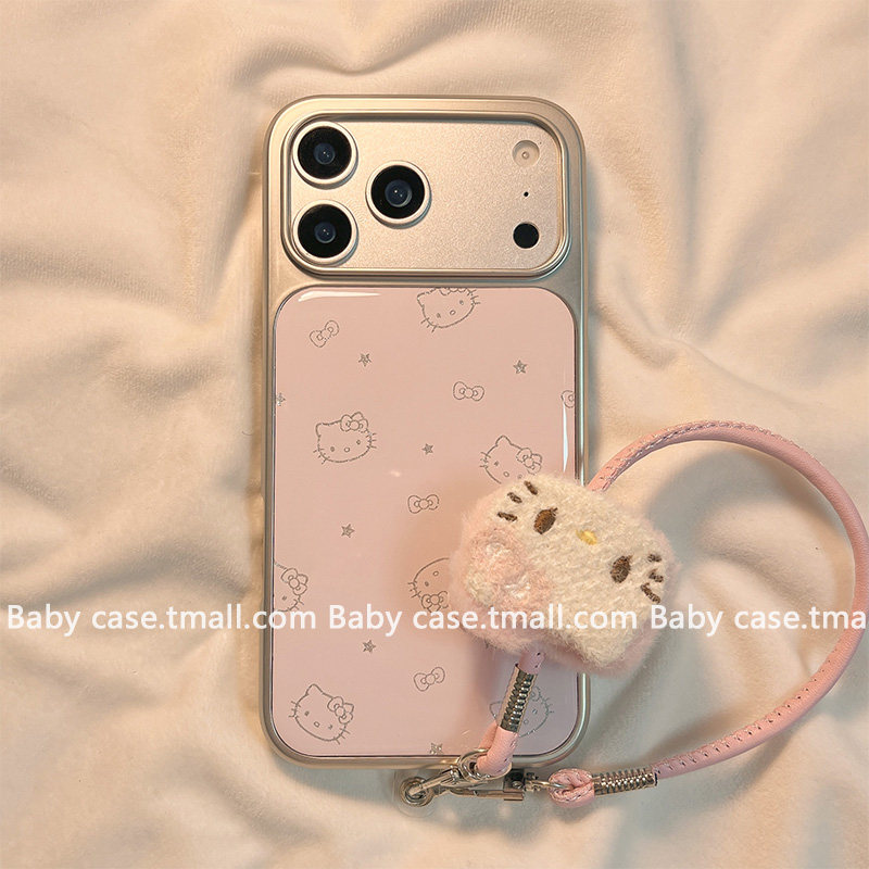 北比少女粉电镀银线条kitty猫适用苹果17promax手机壳iphone16新款15pro带挂绳17可爱14日韩风15网红16pm全包