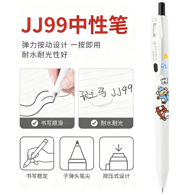 日本文具大赏zebra斑马旗舰店官网限定JJZ66斑马中性笔bLen减振笔低重点ins高颜值按动式黑色0.5速干可替芯