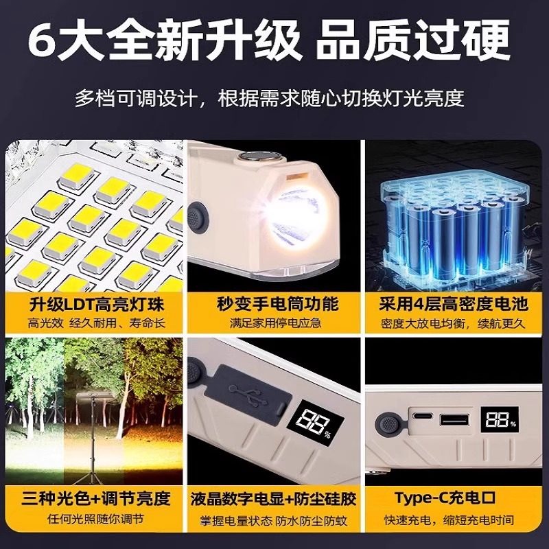 太阳能充电高亮大电量照明应急灯户外野营露营帐篷灯地摊灯长续航