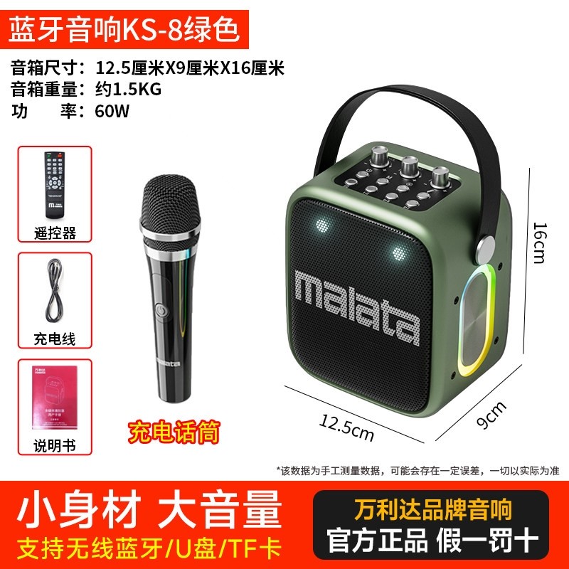 万利达KS-8户外k歌蓝牙音响大功便携广场舞音箱带无线话筒率手提