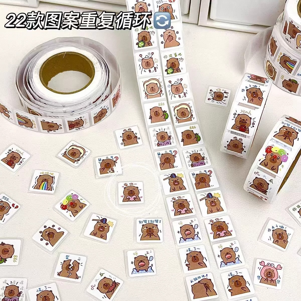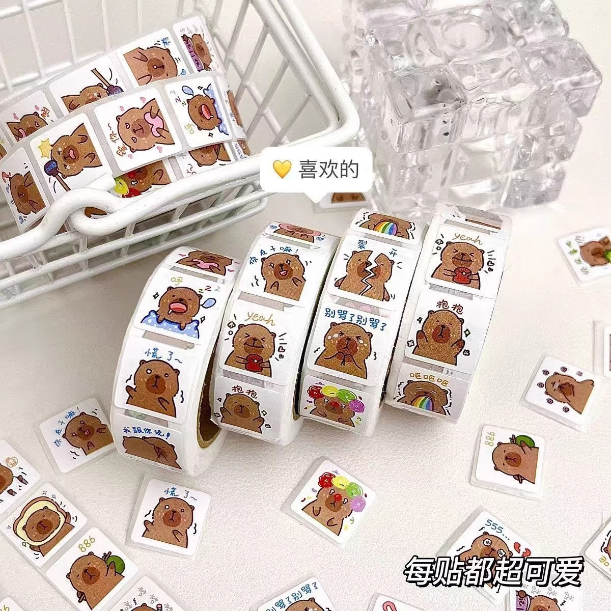 卡皮卷卷贴纸ins高颜值卡通可爱胶带自粘手账装饰圆点封口贴