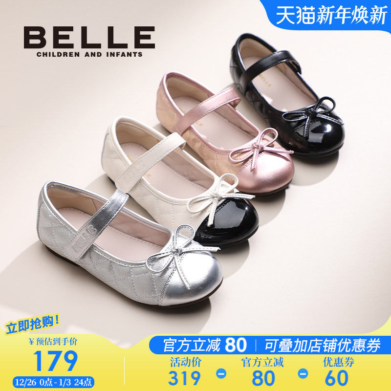 百丽童鞋女童黑皮鞋秋冬2025新款软底鞋子小女孩公主鞋宝宝单鞋