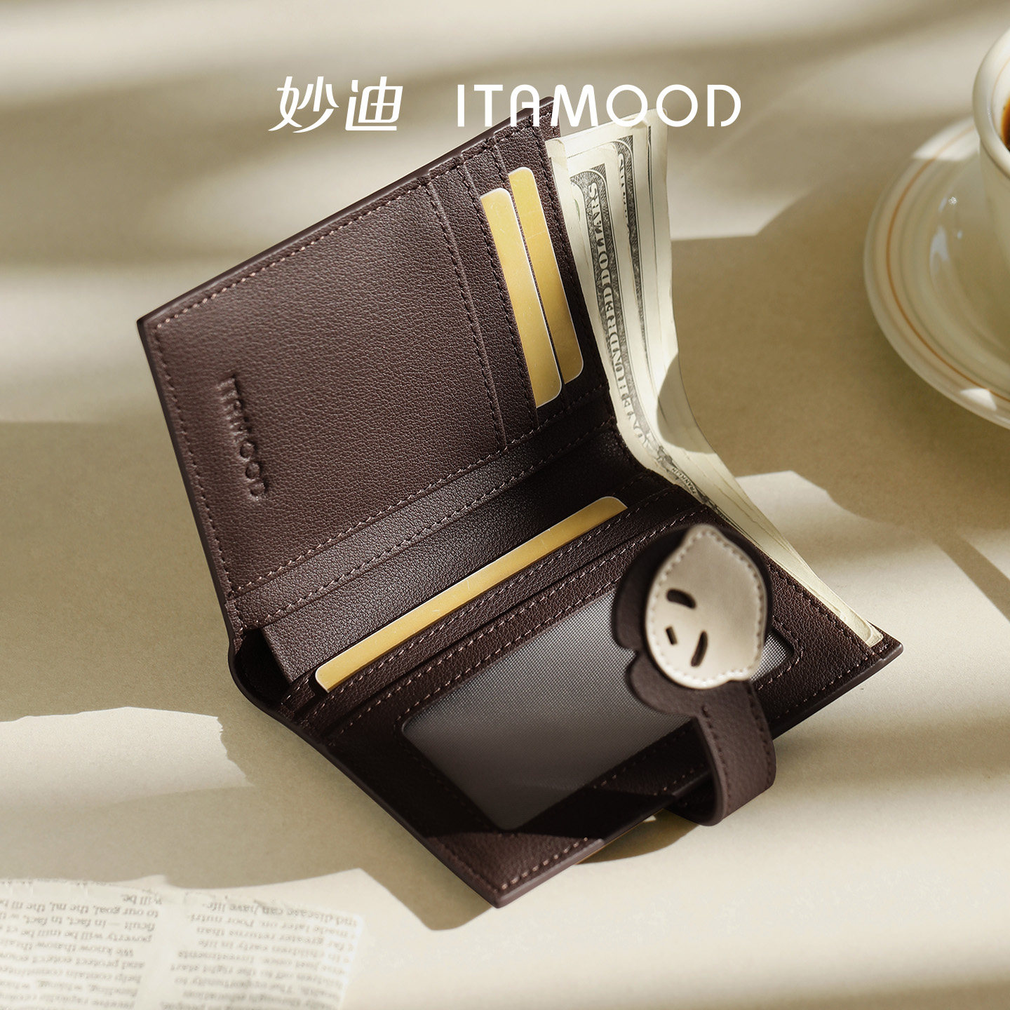 「生日礼物」妙迪轻薄多卡位折叠女款小巧钱夹多功能短款零钱包包