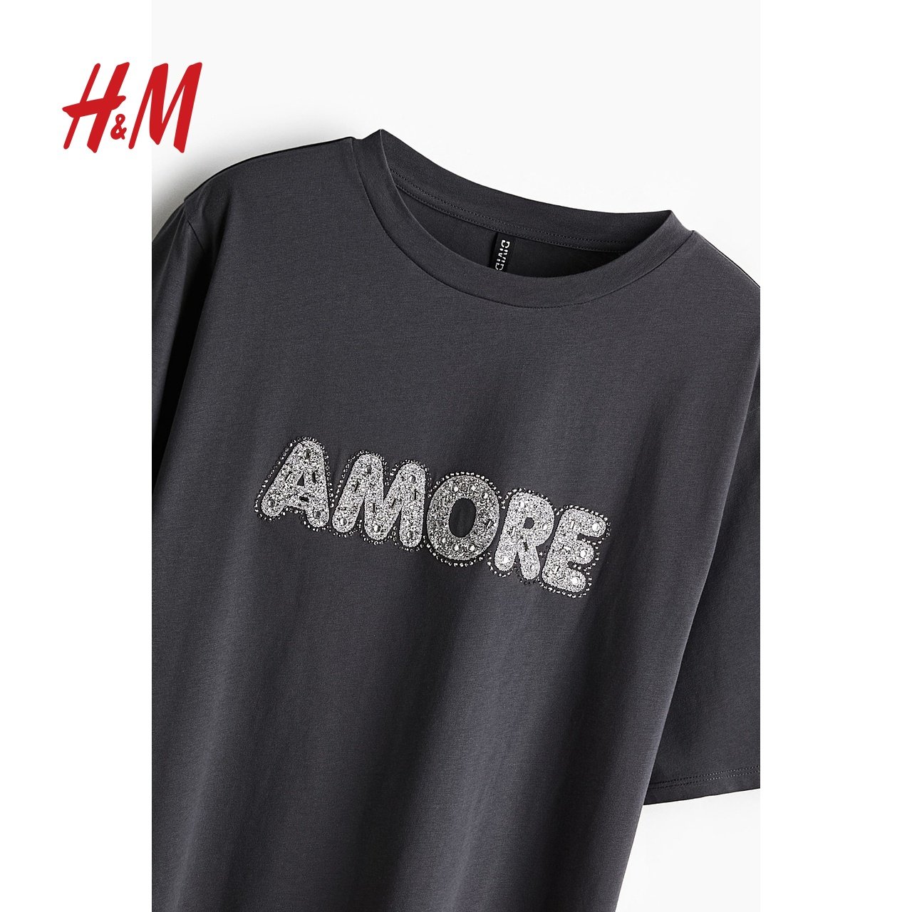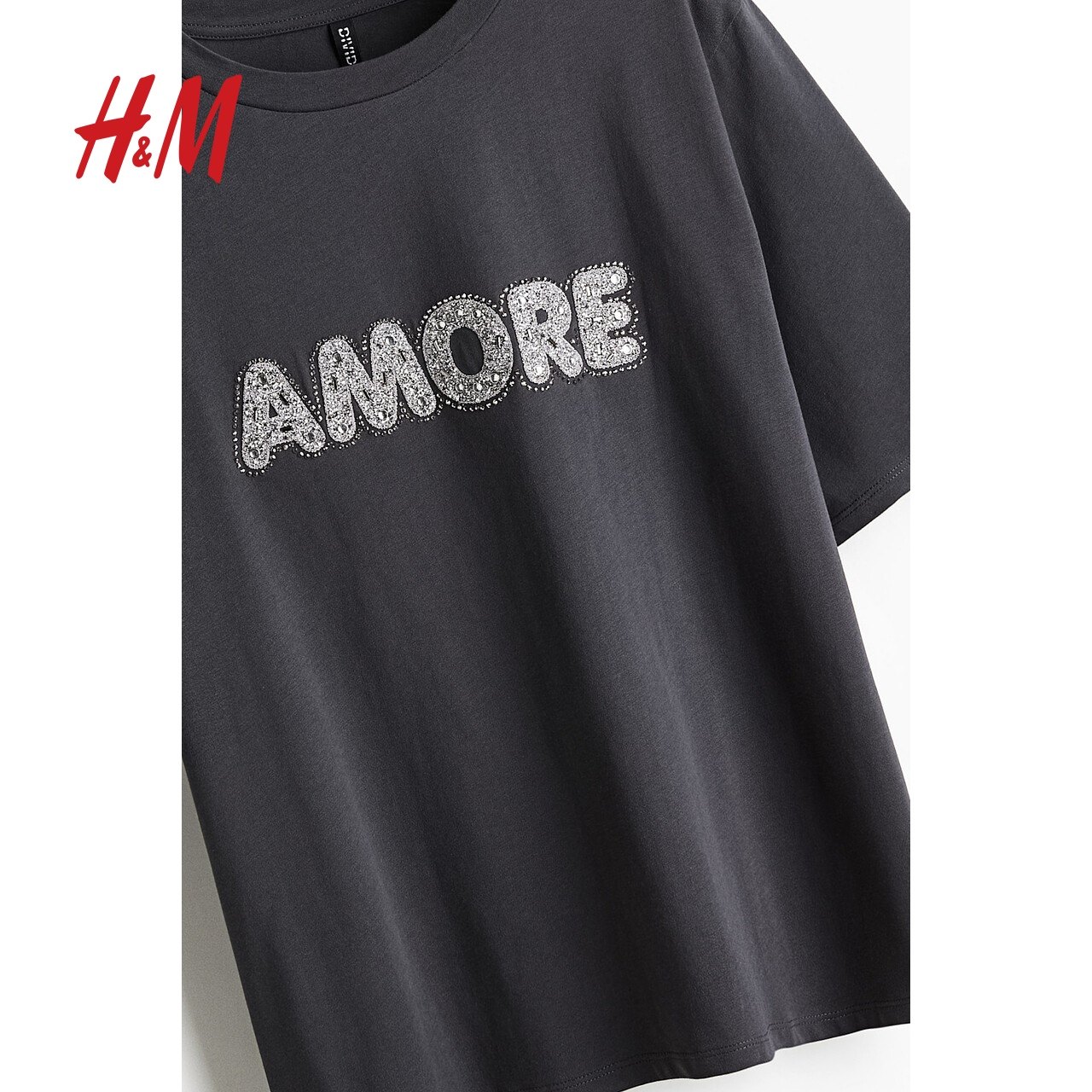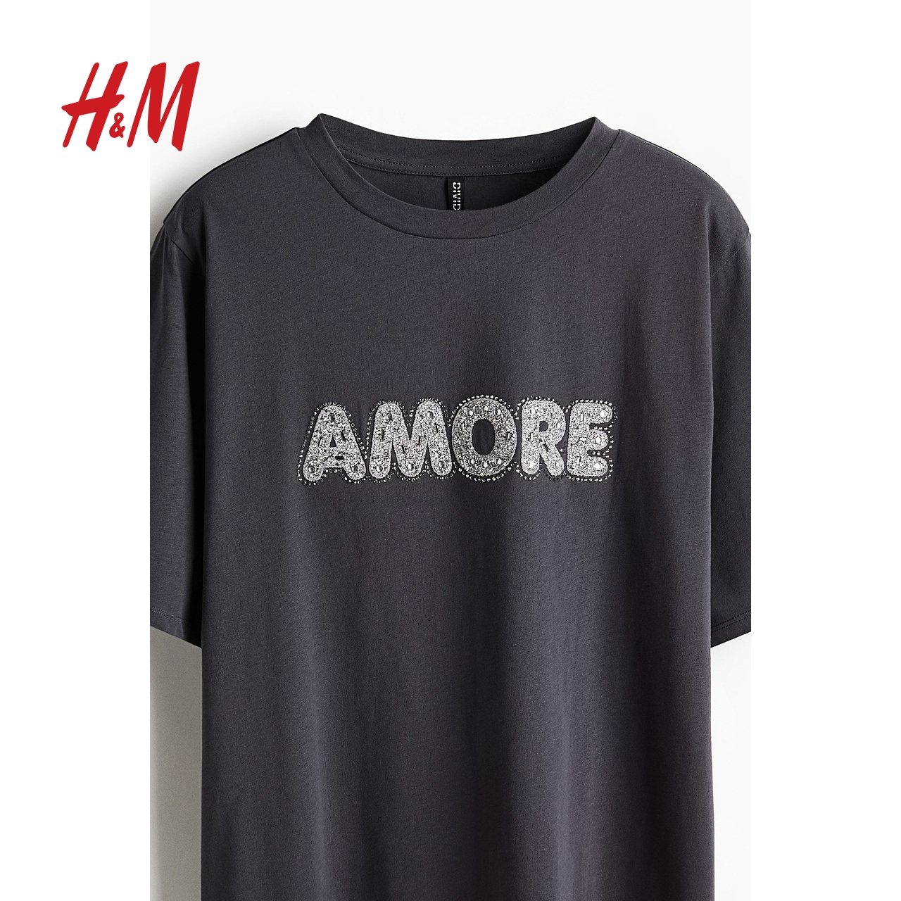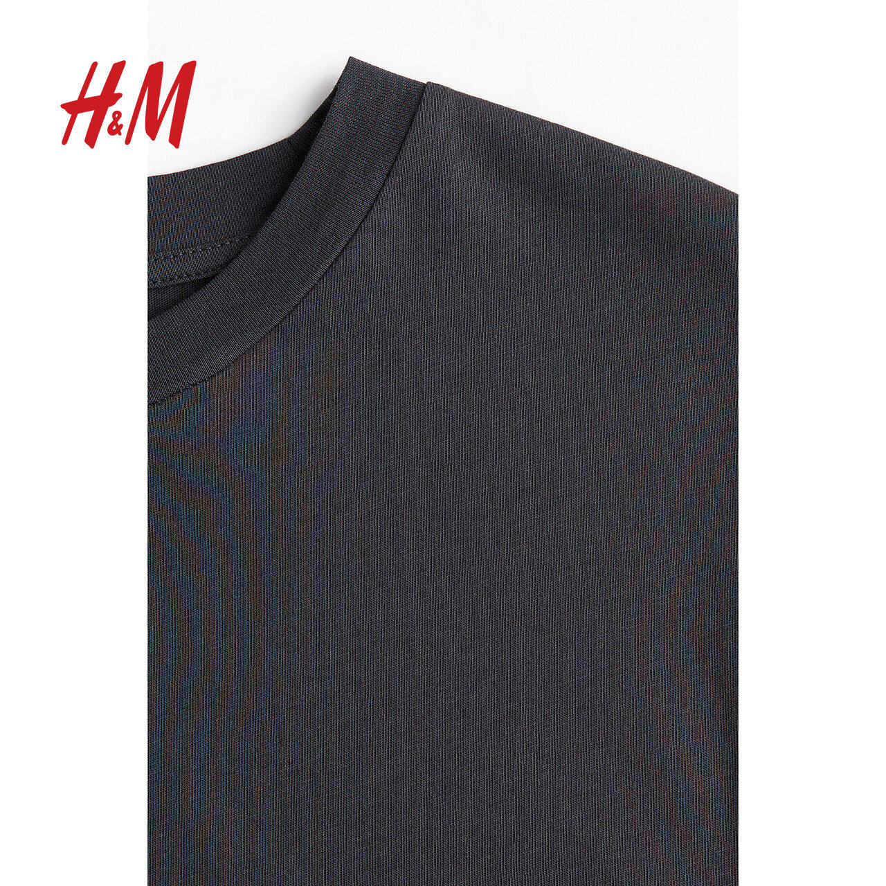 HM女装冬季圆领棉质宽松舒适T恤1275413