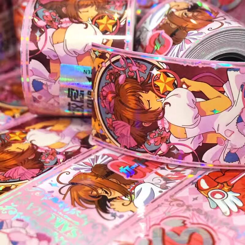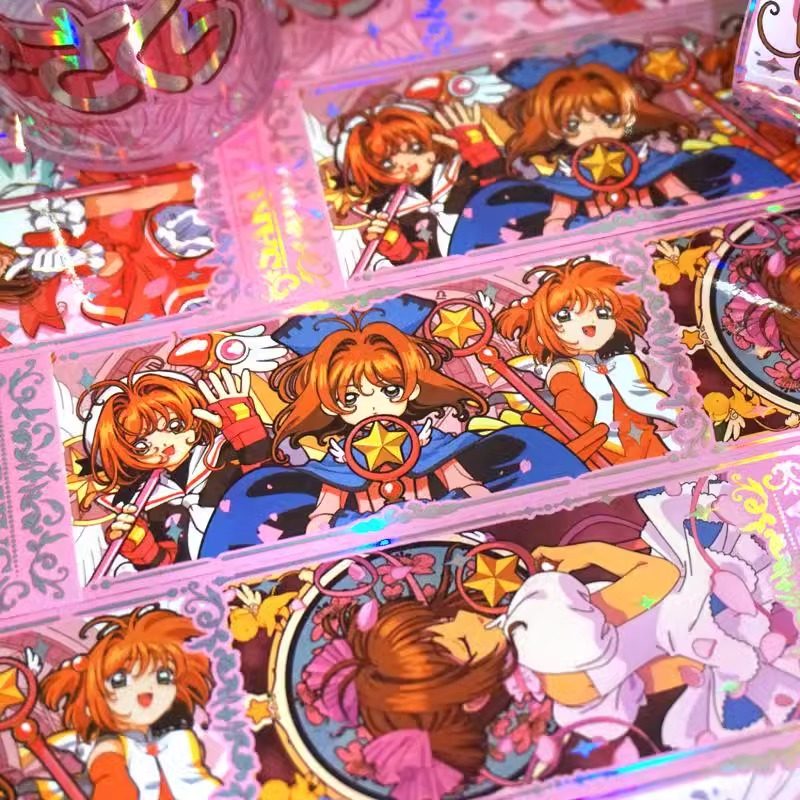 百变小樱魔法少女卡牌镭射卡通长条行李箱胶带汽车滑板电动车贴纸