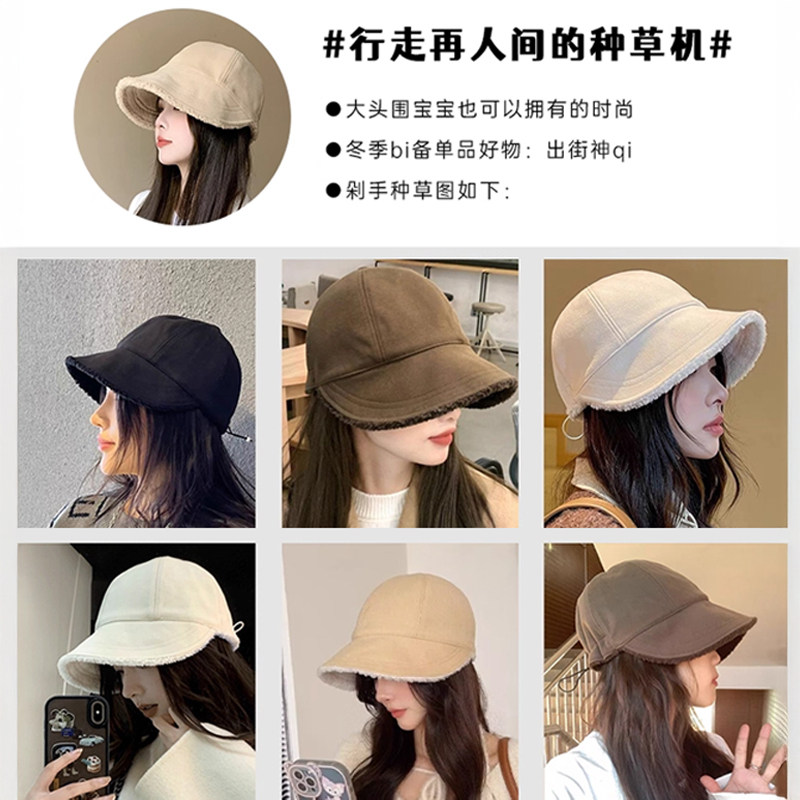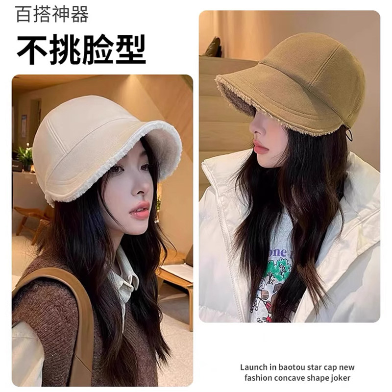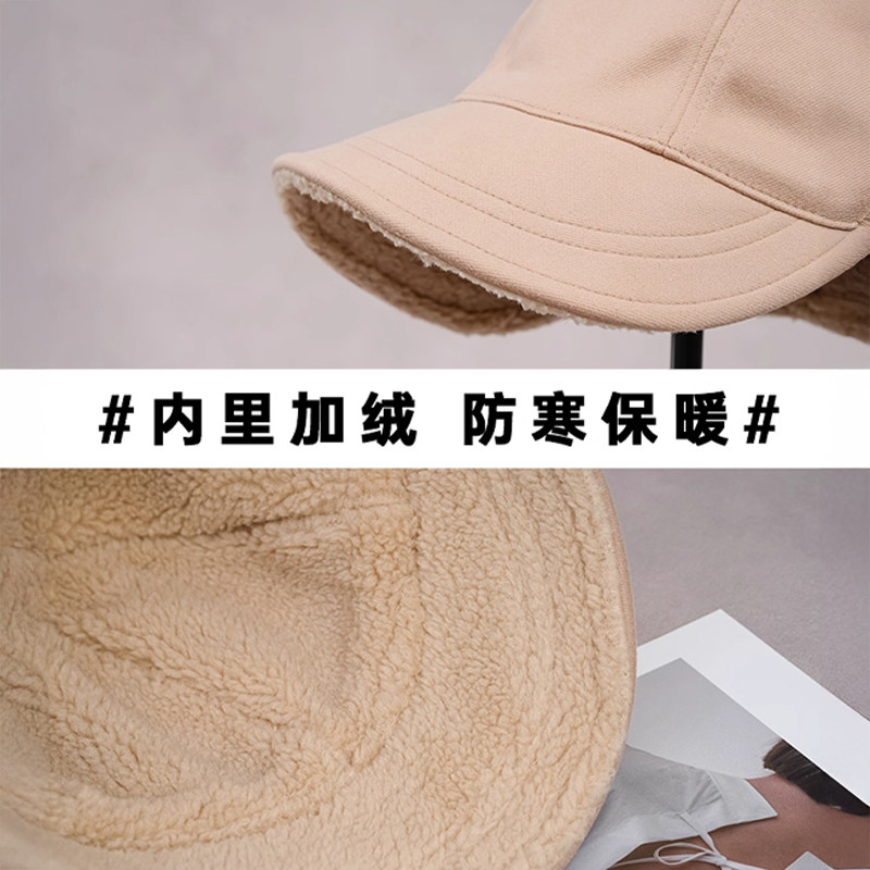 同款帽子女秋冬渔夫帽加厚保暖羊羔毛鸭舌帽显脸小新款防寒加绒