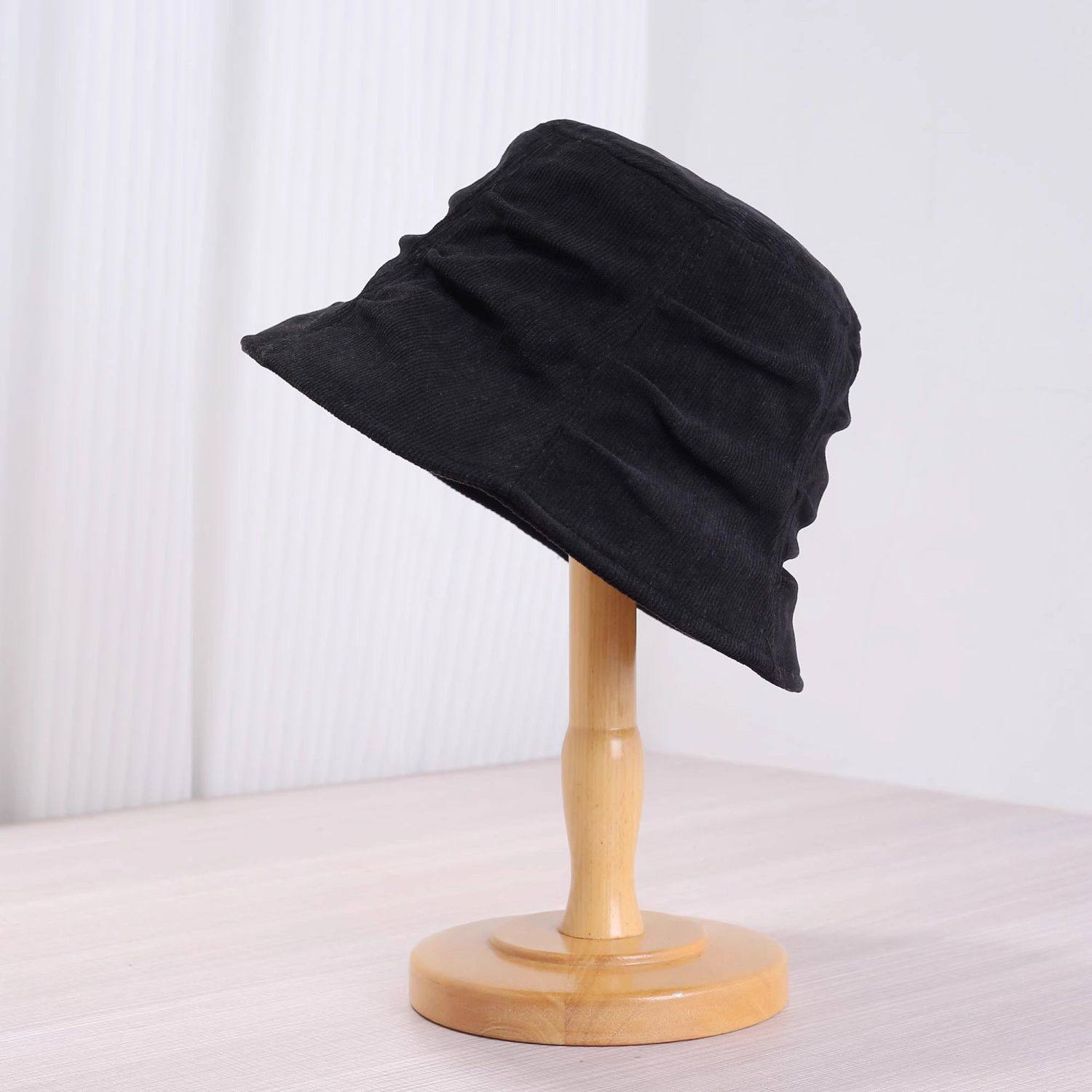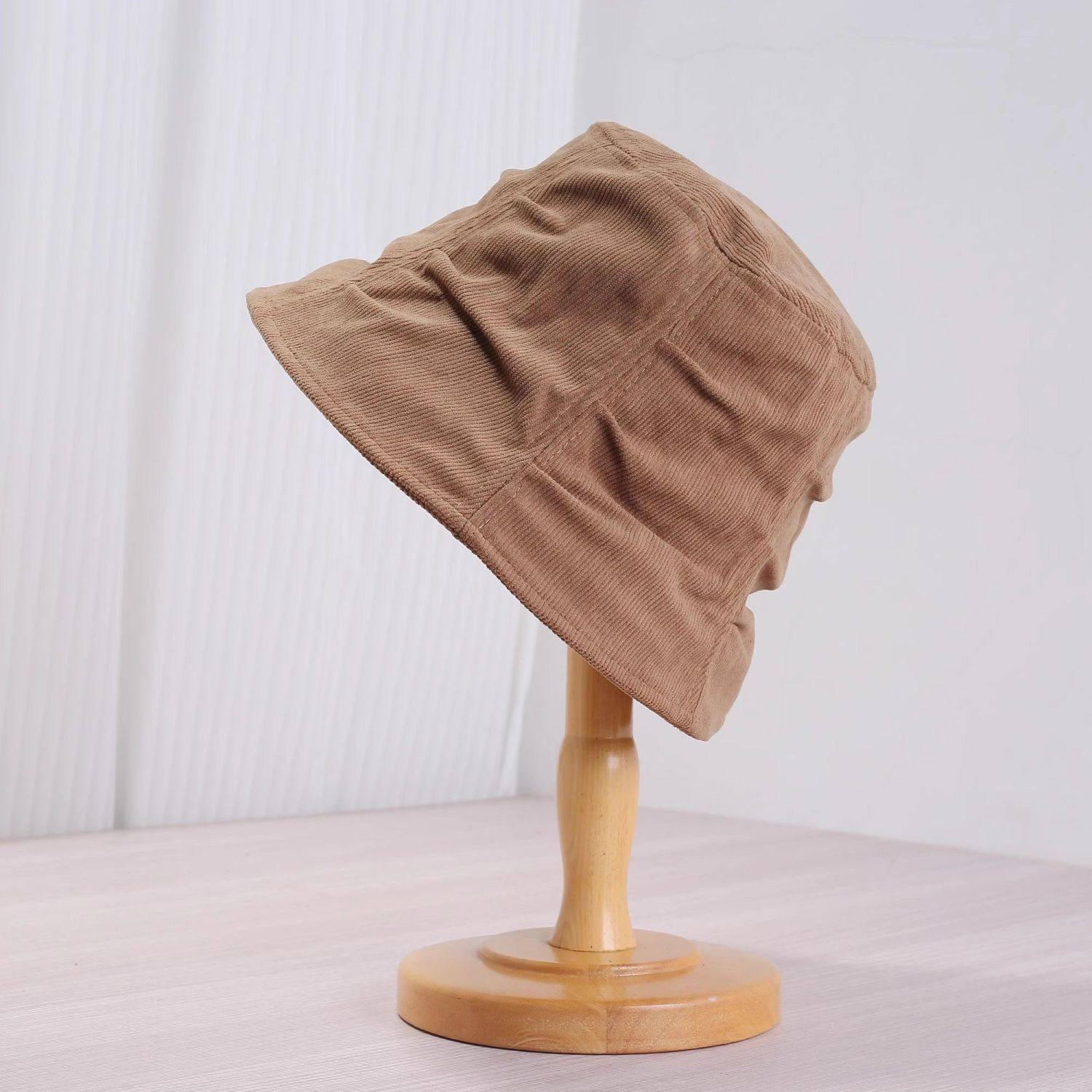 日系灯芯绒渔夫帽子女春秋冬季显脸小水桶帽盆帽黑色咖色防风休闲