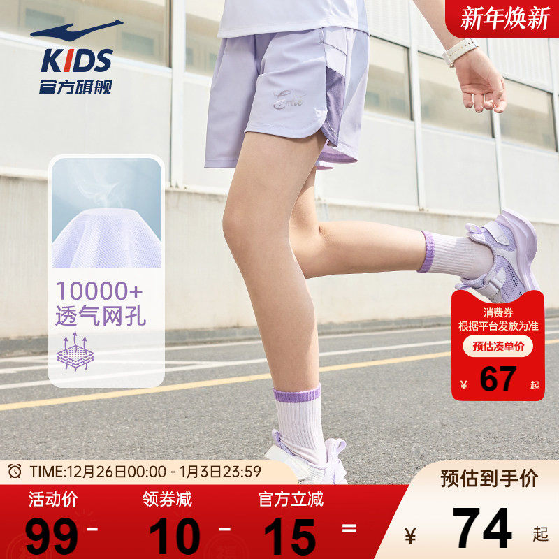 鸿星尔克童装女童运动短裤夏季轻薄透气五分裤跑步穿儿童针织裤子