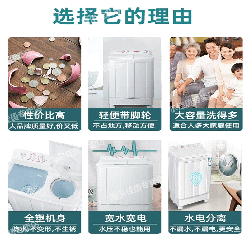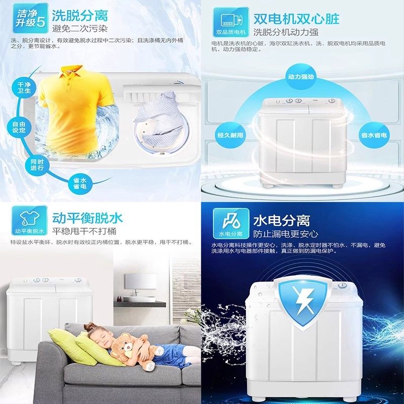 海尔统帅洗衣机10公斤大容量双缸桶半自动家用小型强力去污1188BS