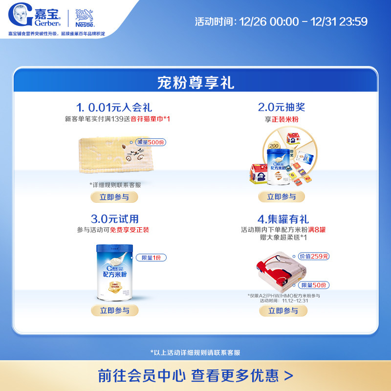 【营养高蛋白】嘉宝配方米粉PHW部分水解蛋白益生菌高铁米粉2罐