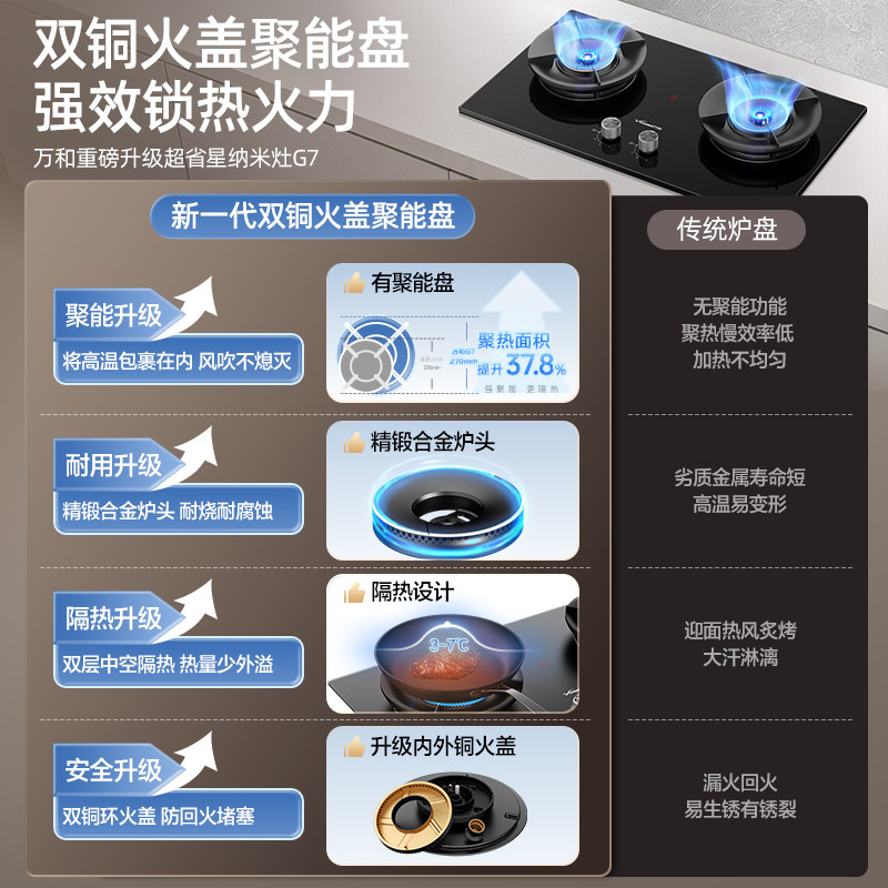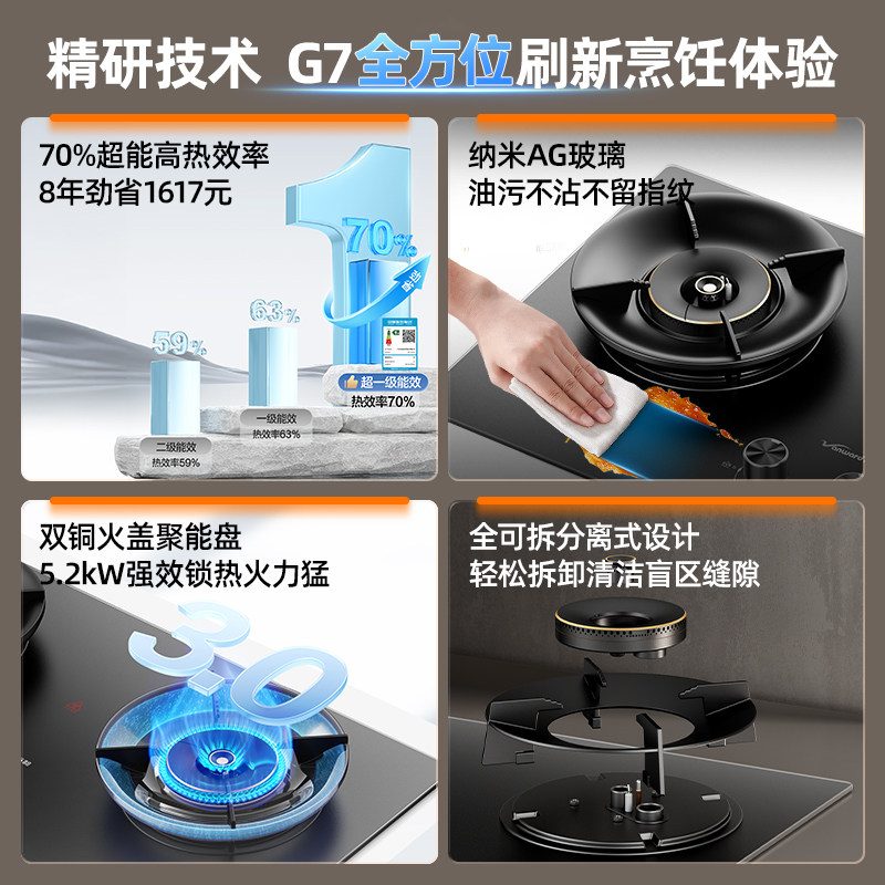 [政府补贴]万和燃气灶双灶家用天然气台灶具台式嵌入式两用炉灶G7