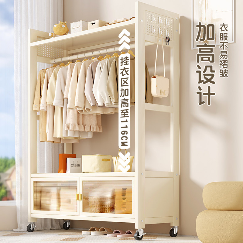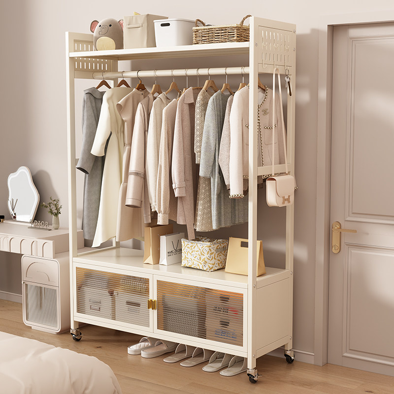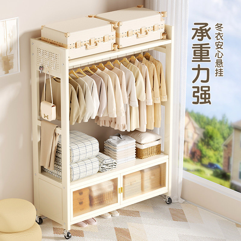 衣架落地卧室奶油风挂衣架家用铁艺简易晾衣架室内客厅移动衣帽架