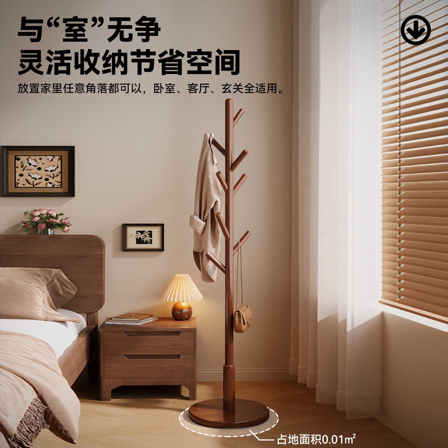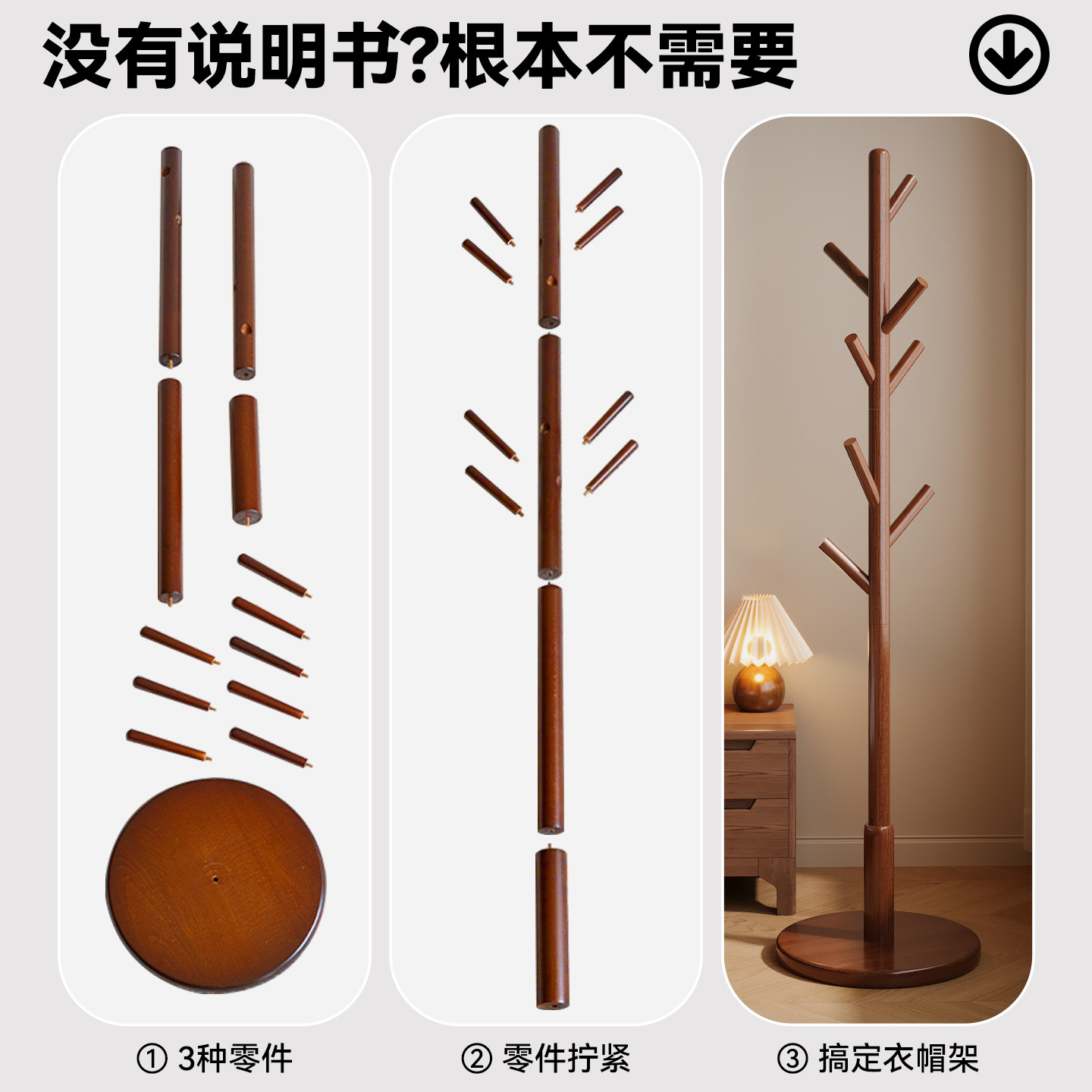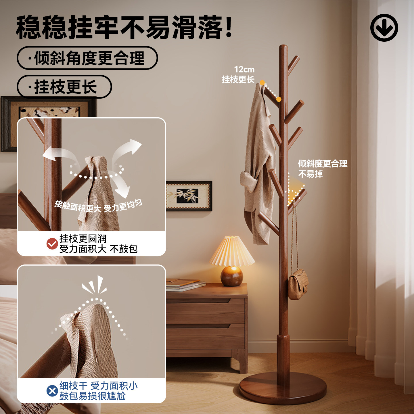 实木挂衣架卧室落地家用加厚立式衣帽架办公室挂衣服置物架子房间