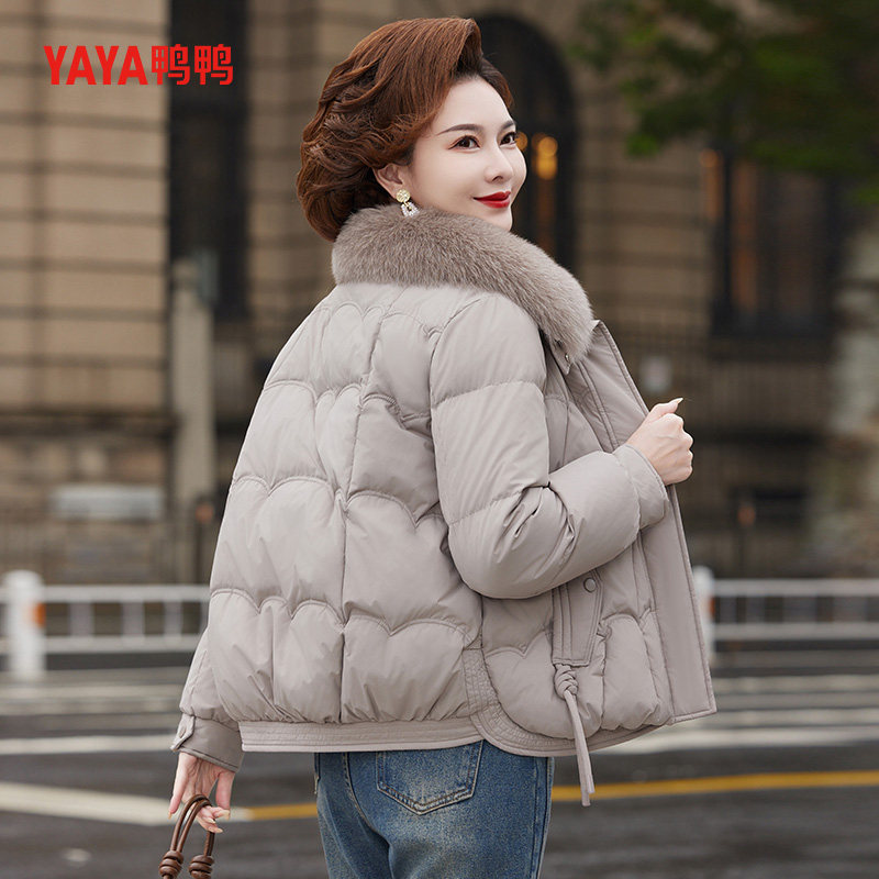 鸭鸭短款羽绒服女款2024新款中年妈妈狐狸毛领冬装中老年防寒外套