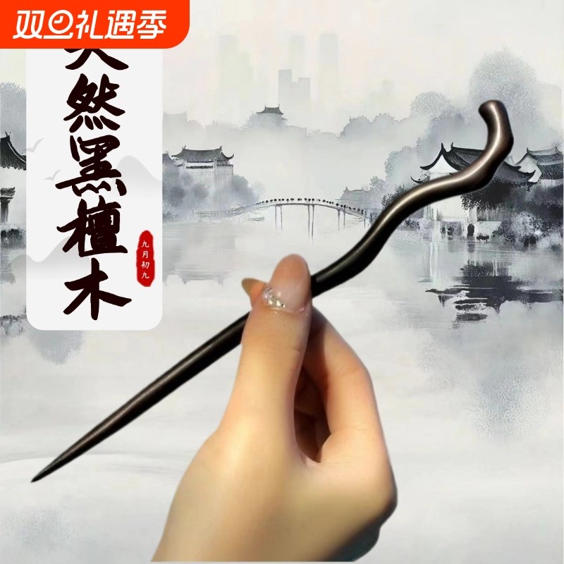黑檀木发簪女古风新中式高级感现代日常木簪加长簪子发饰木头鹿角