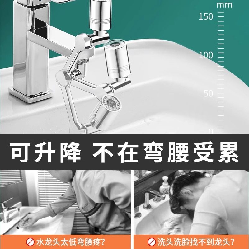 全铜机械臂万向水龙头延伸器防溅出水嘴可旋转洗脸盆神器厨房面盆