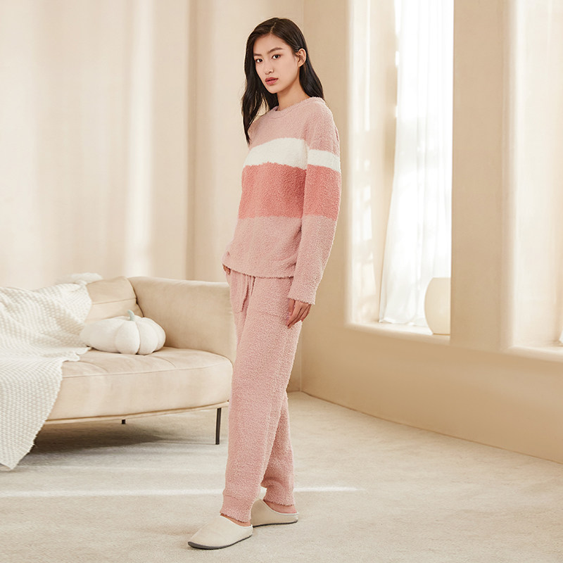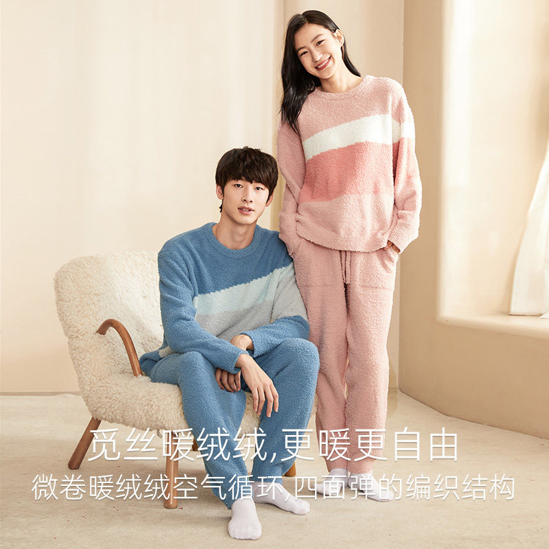 觅丝【超柔软】秋冬保暖女士睡衣情侣半边绒套装男士家居服可外穿